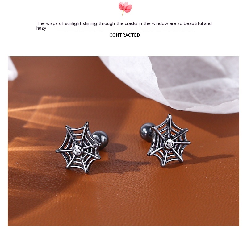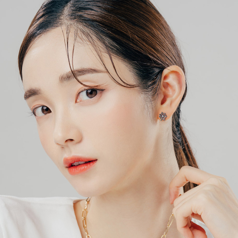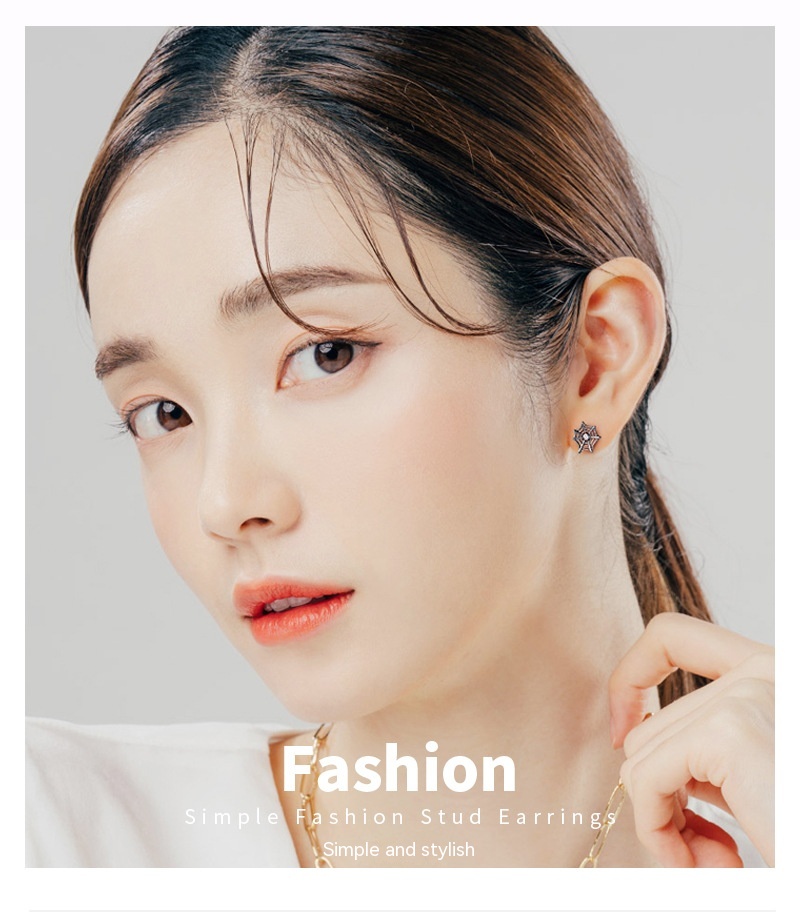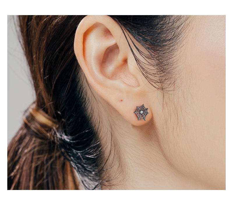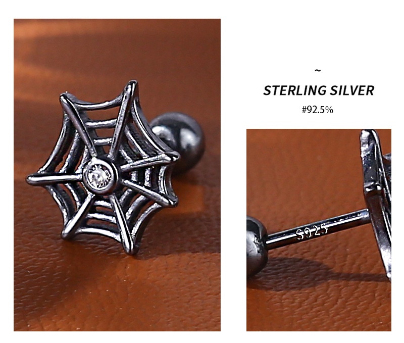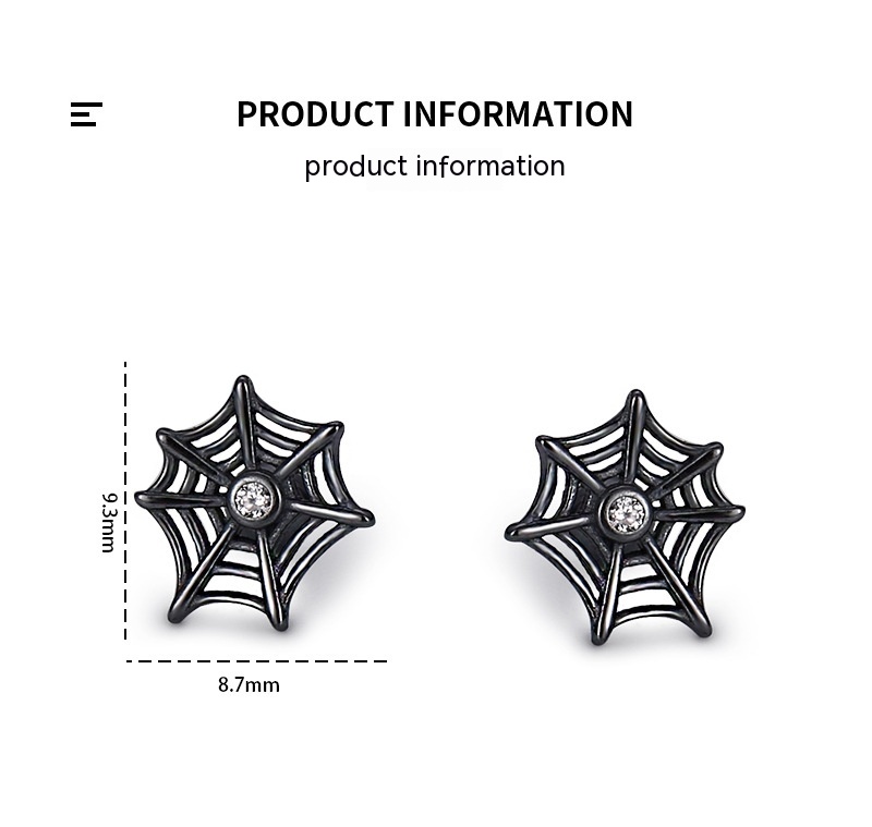 Product information:Treatment Process: Electroplating Type: ear studs Color: E02107 Material: Silver Purity: s925 Popular elements: Geometry Shape: Spider Web zircon Style: dark style