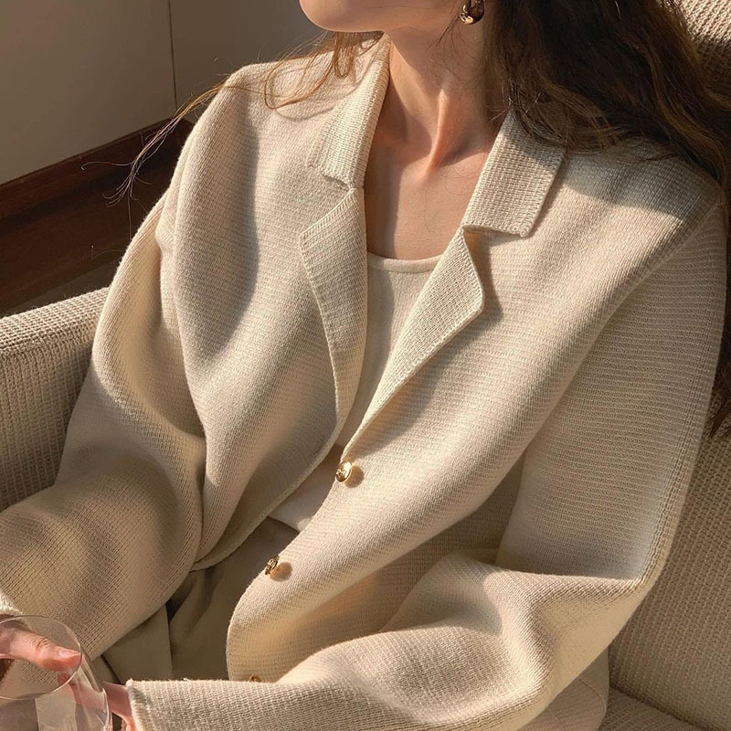 Material: viscoseThickness: Super thickWool thickness: fine woolSweater craft: knittingCombination form: one-piece setDressing style: commutingStyle: cardiganEdition type: Loose