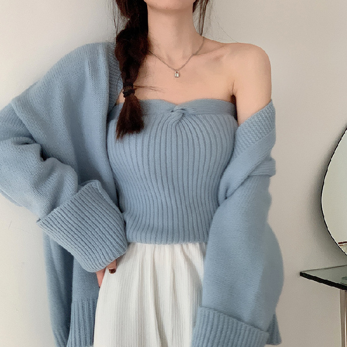 Color: white tube top one-piece, blue tube top one-piece, white sweater one-piece, blue sweater one-piece