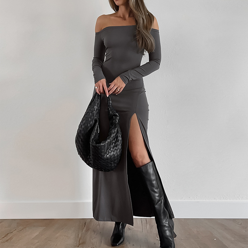 Product information: Color: Gray Waist type: high waist Size: S,M,L Skirt length: long skirt Main fabric composition: Polyester Sleeve length: long sleeve