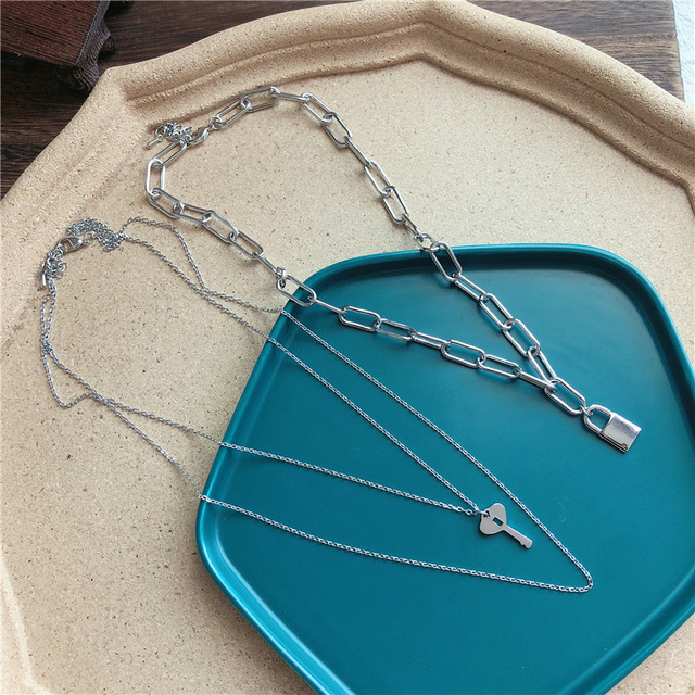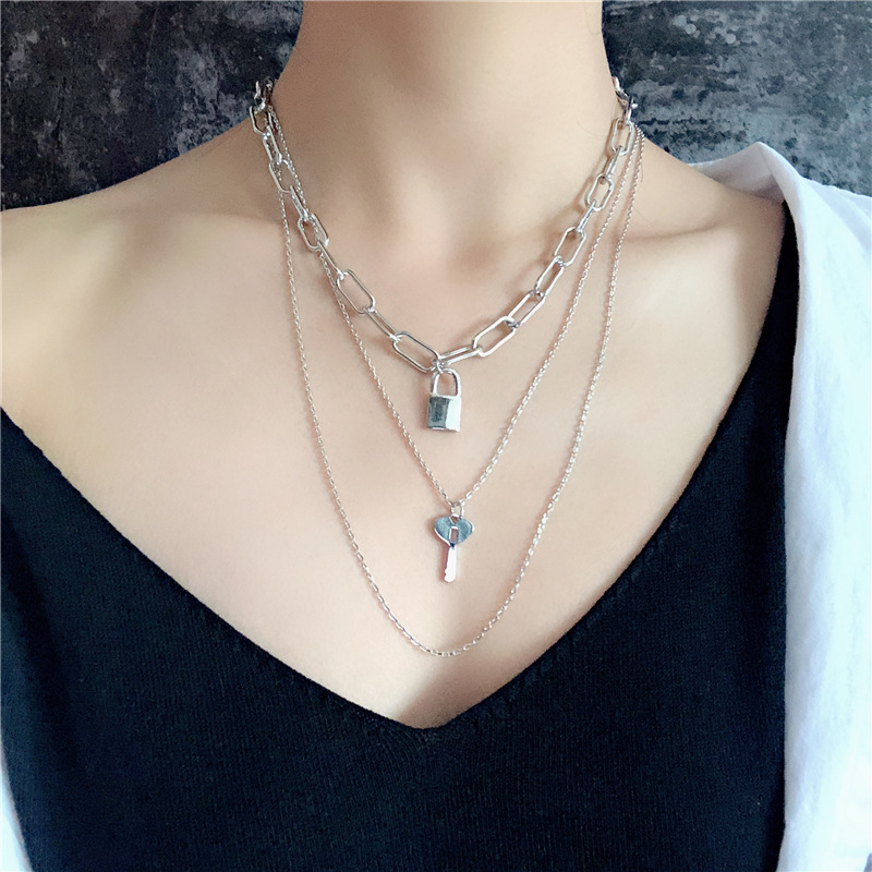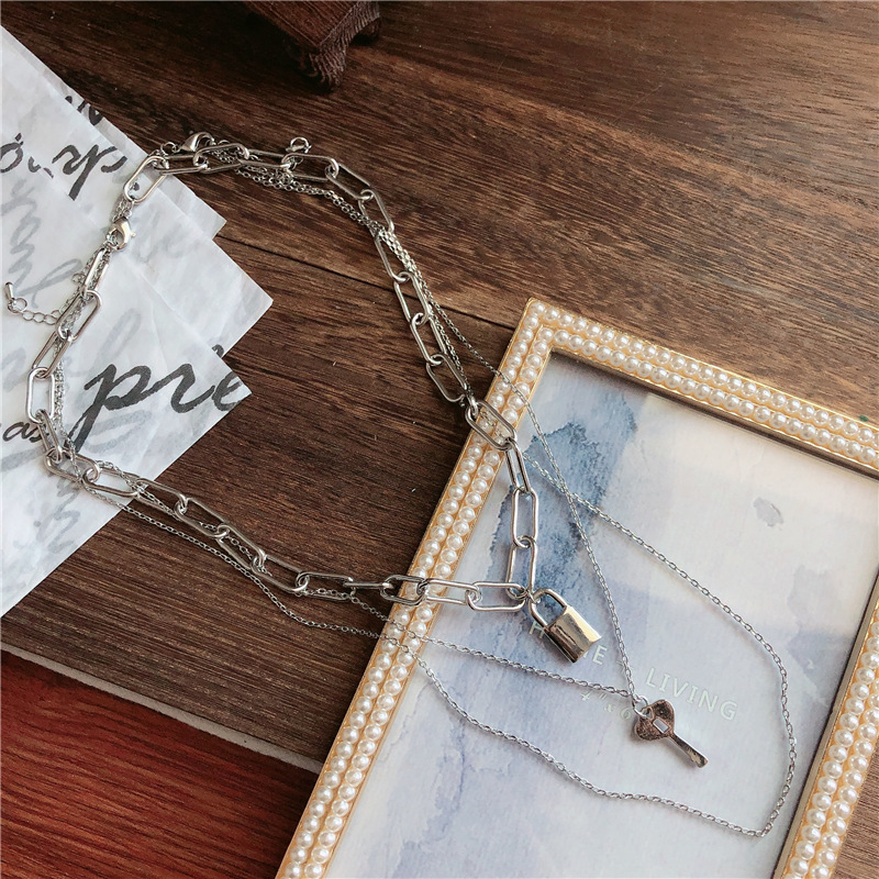 American INS web celebrity individual character key locks multilayer necklace to restore ancient ways cold agitation person street pats hip hop clavicle neck chain