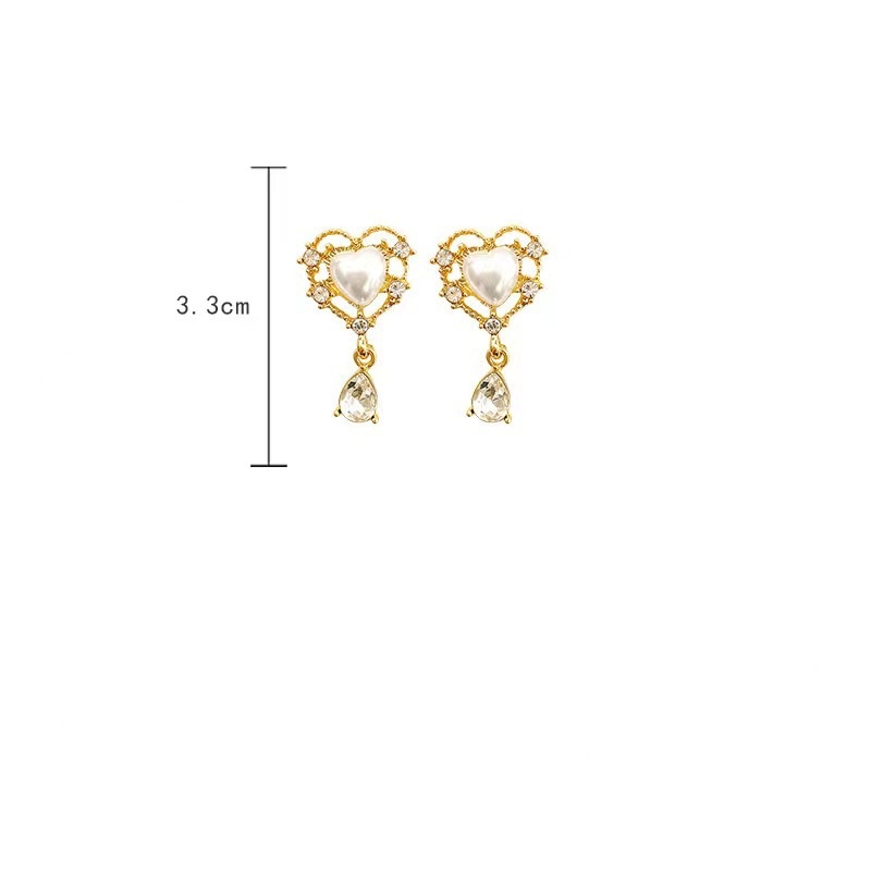 Women's Sterling Silver Needle French Vintage Pearl Love Heart Earrings