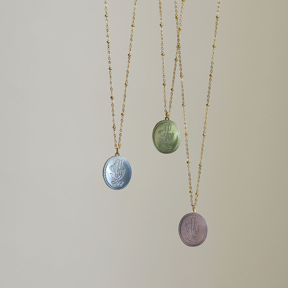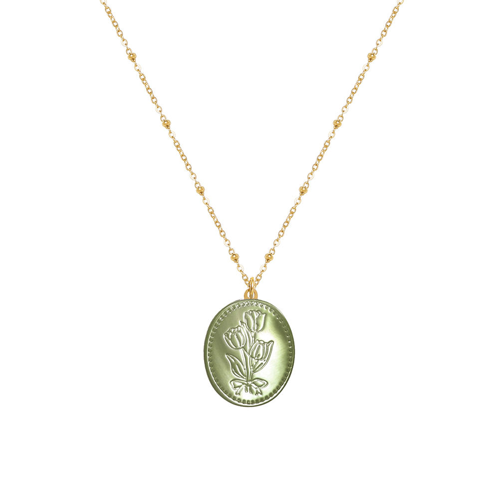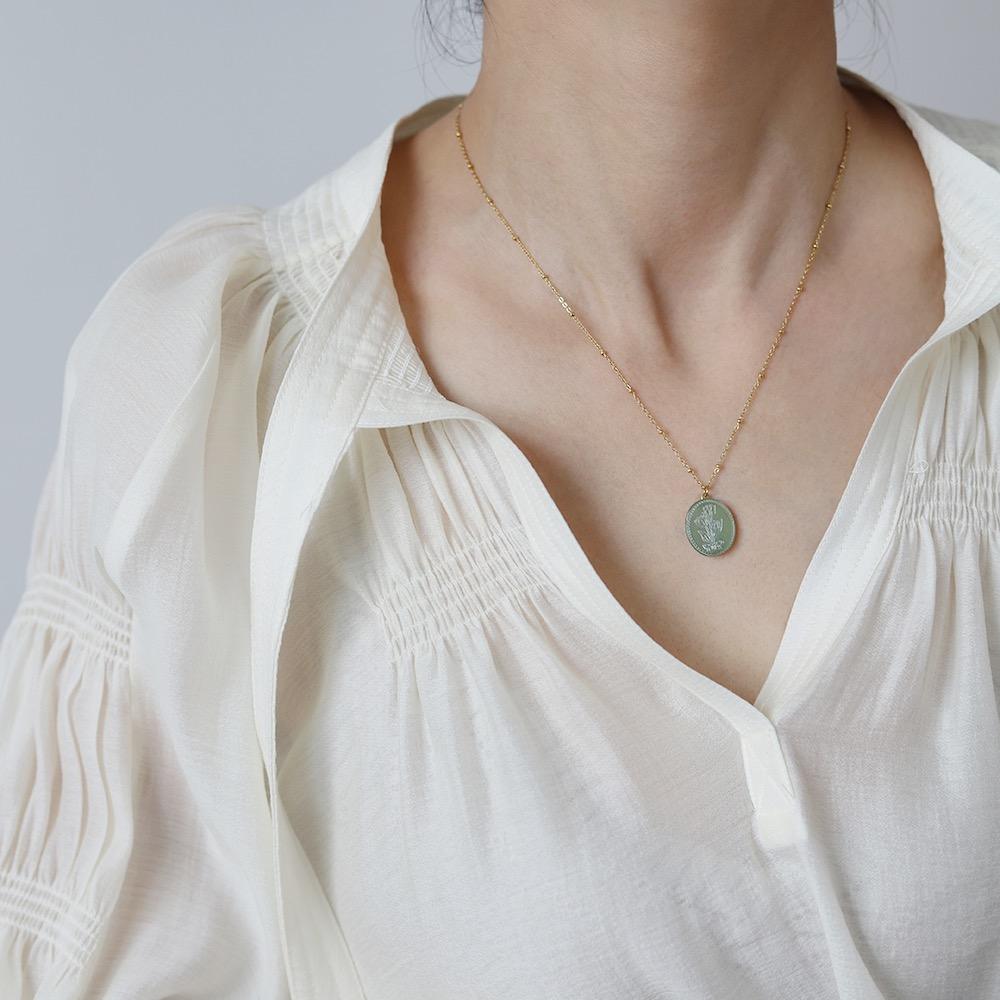 Specifications:Pendant size 1.8x1.5 cm, with shellChain length 46+6 cm, medium and short lengthMaterial: Titanium steel+dyed shell