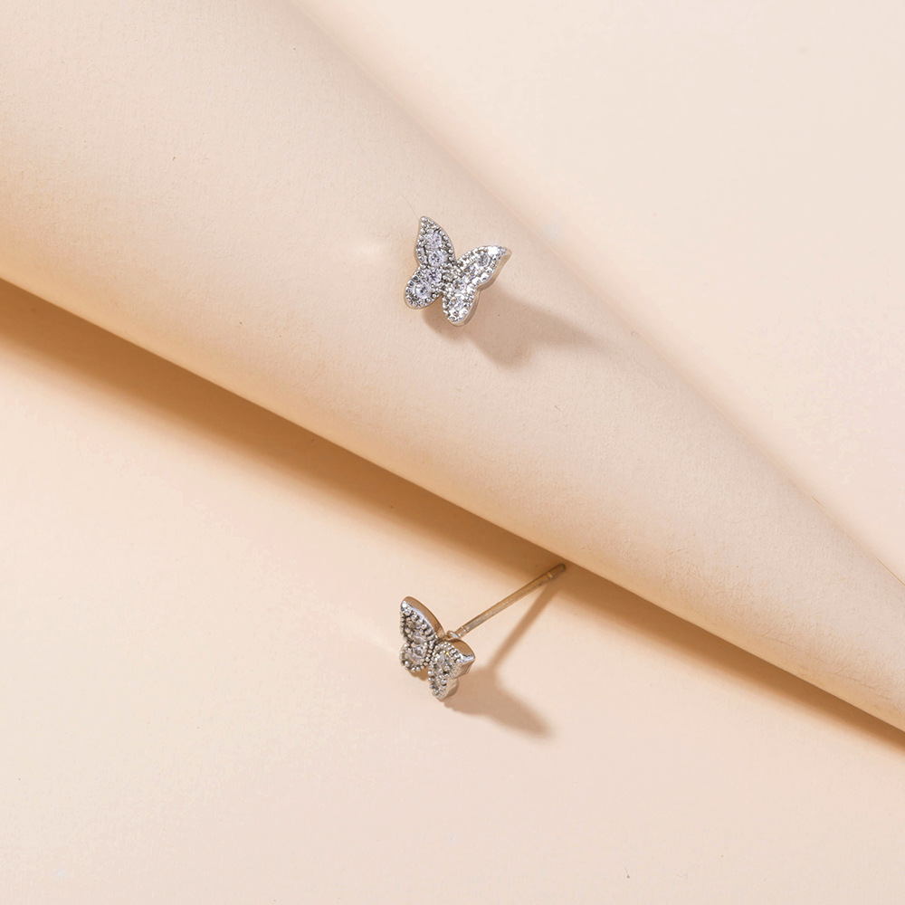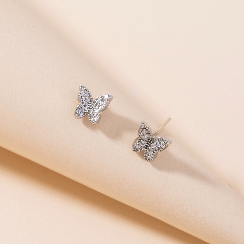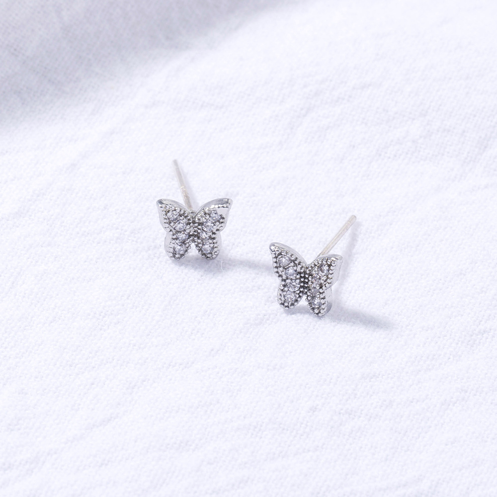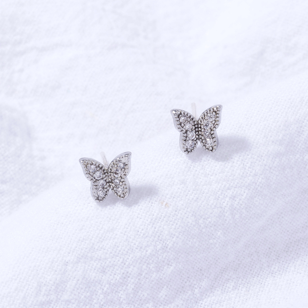 Simple Ins Wind Slightly Inlaid Butterfly Zircon Earrings
