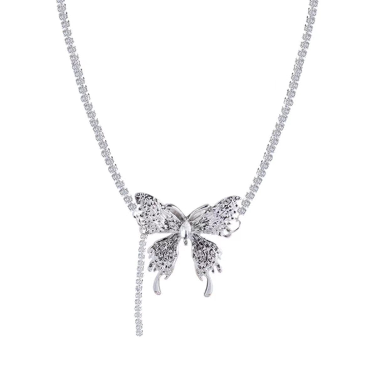 Product information:Color: rhinestone butterfly necklaceApplicable people: womenPendant material: AlloyChain style: clavicle chainMaterial: AlloyShape: BowPopular elements: ButterflyStyle: affordable luxury style