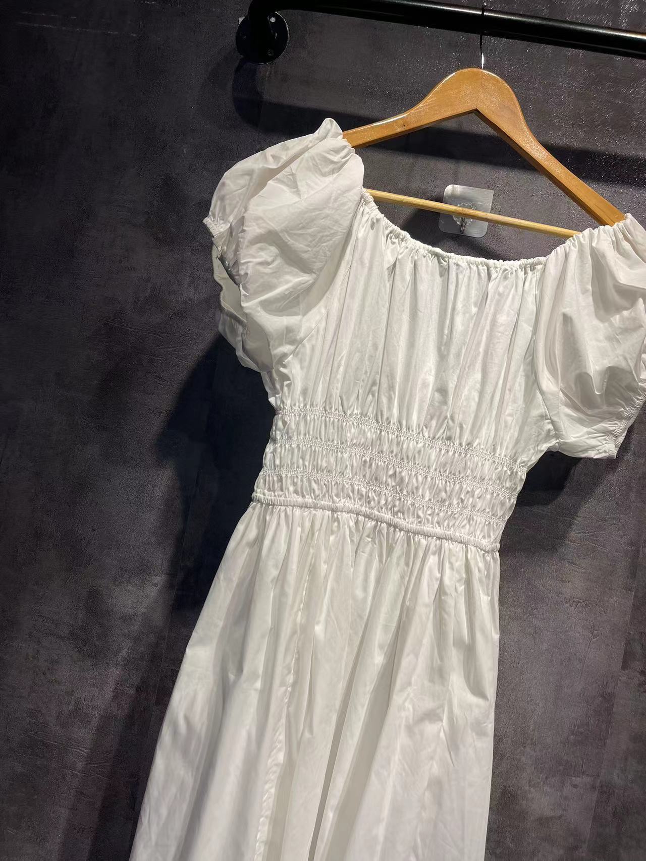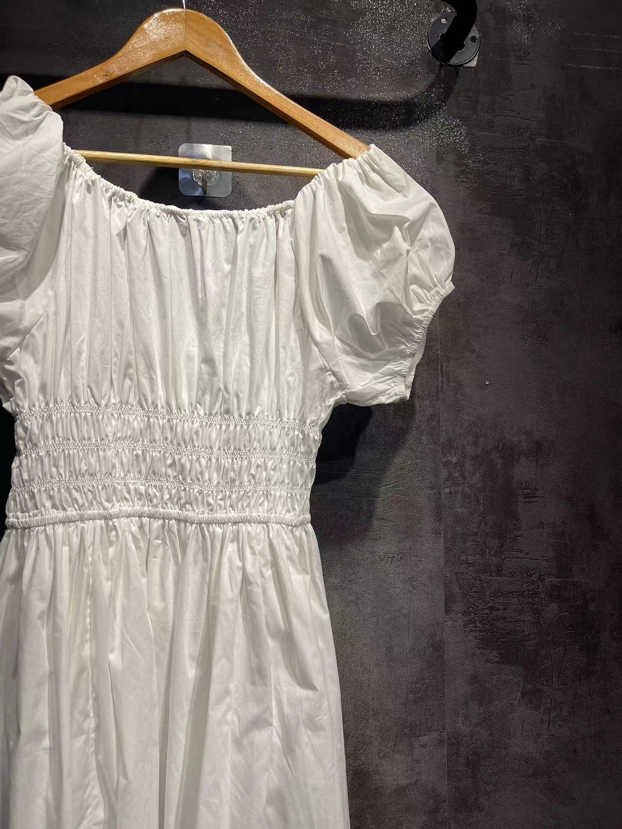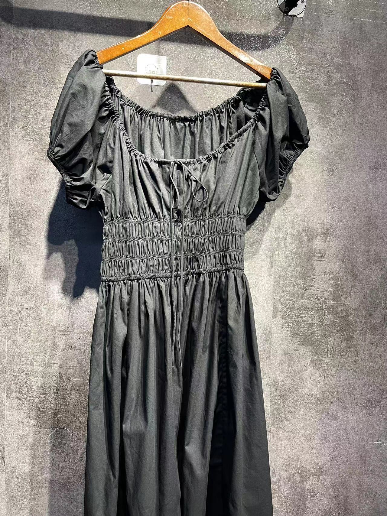 Women's Black Plaid Cotton Puff Sleeve Waist-controlled Large Hem Lace-up Dress