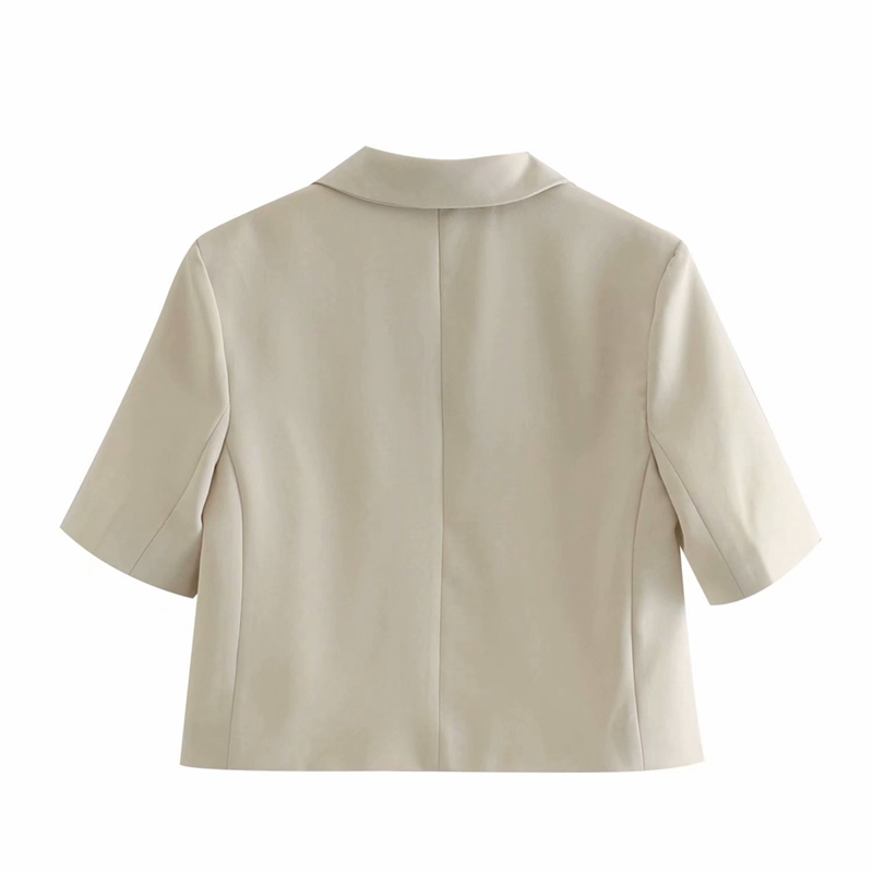 Product information:Size: XS S M LStyle: streetClothing placket: a buttonColor classification: light beigesleeve length: short sleeve