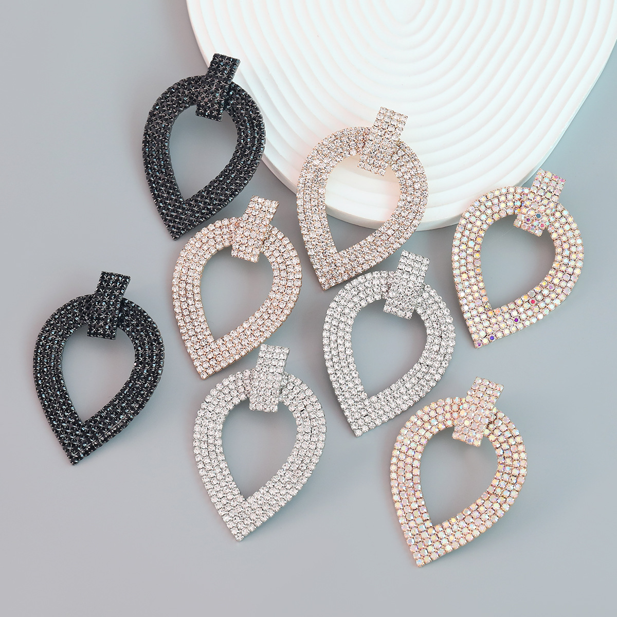 Product information:Color: AB, gold, silver, black Applicable population: Female Shape: Geometry Style: ins style Size: 7.2cm long and 5.1cm wide Material: Alloy Rhinestone