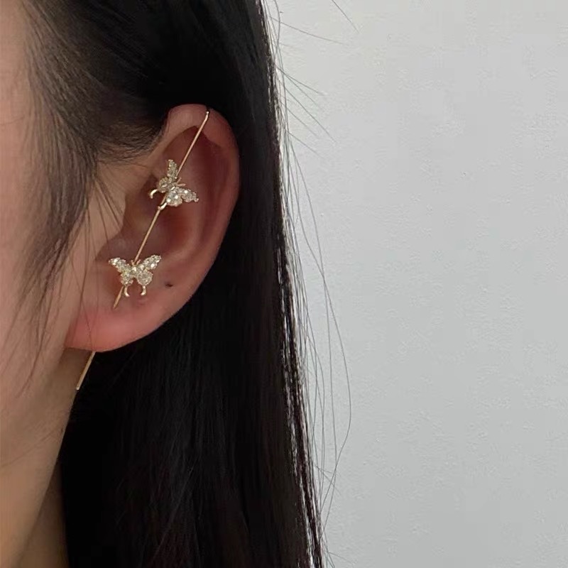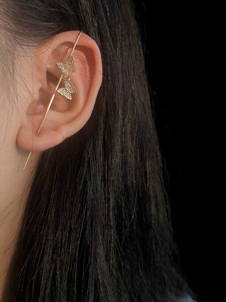 Color: A single butterfly earring, B single winding pearl earring, C single circle earring, D single eight diamond earring, E single hollow earring, F large butterfly earring single, G two butterfly earrings single, H single butterfly earring, I flower earring, J bear earring single, K cross earring single, L blooming flower earring single, M three small flower earring single