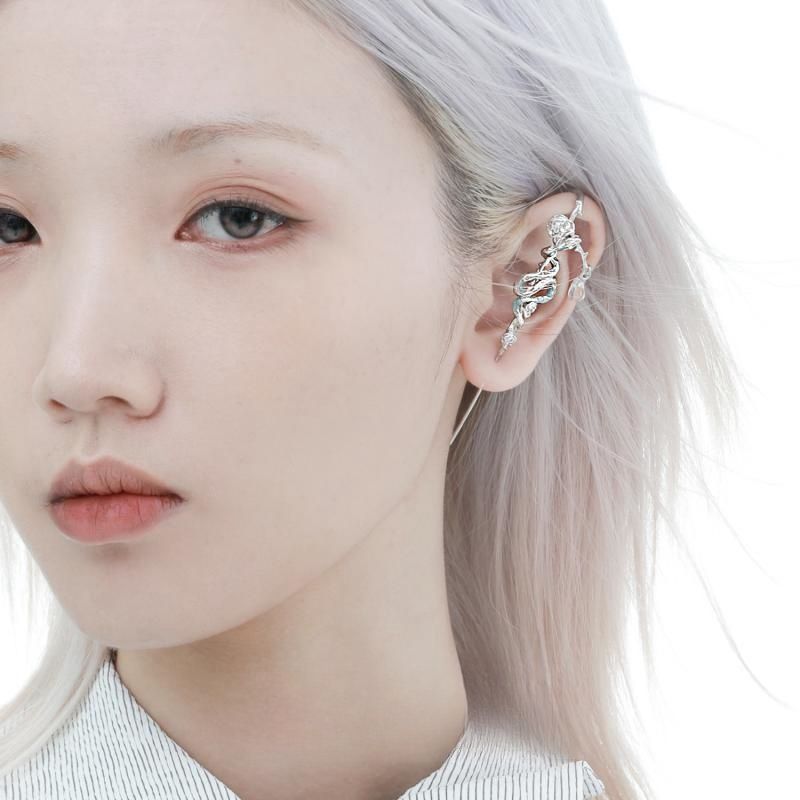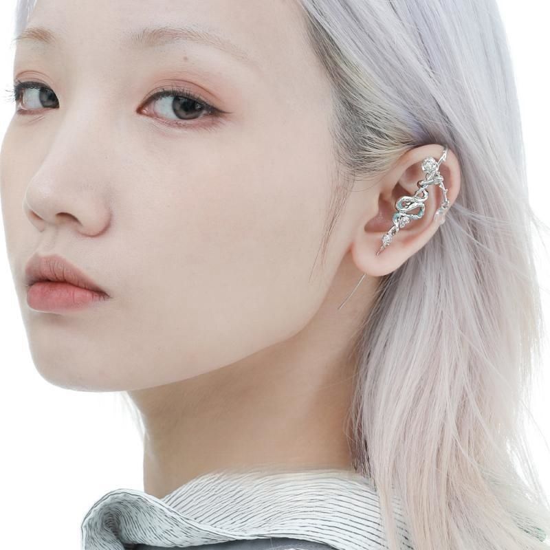 Exaggerated Ice-sealed Snake Ji Piercing Earrings Integrated Ice Blue Snake