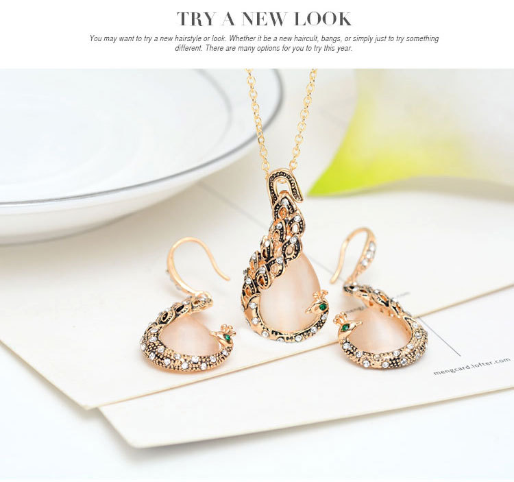 Product information:Material: AlloyTreatment process: inlaid with gemsStyle: UnisexSet combination: earrings + item decorationsPattern: Love/Water Drop/BellColor: Rose Gold/61152010Packing list:Alloy earrings X1pair Necklace*1