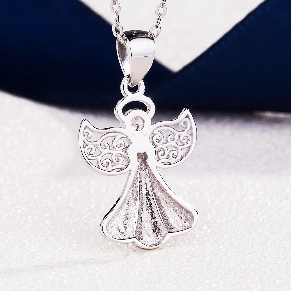 Name: All silver angel pendantModel: d007Style: European and AmericanMaterial: s925 silverColor: electroplated platinumSize: length 25mm width 16mmPackaging: Individually packedStyle: AngelApplicable occasions: birthday/wedding/travel