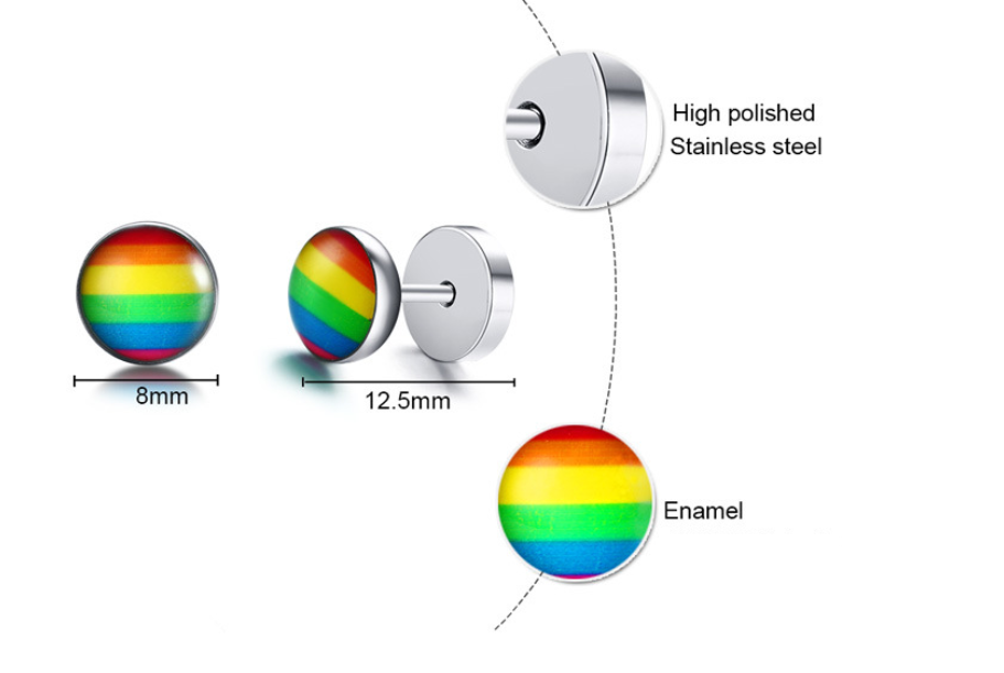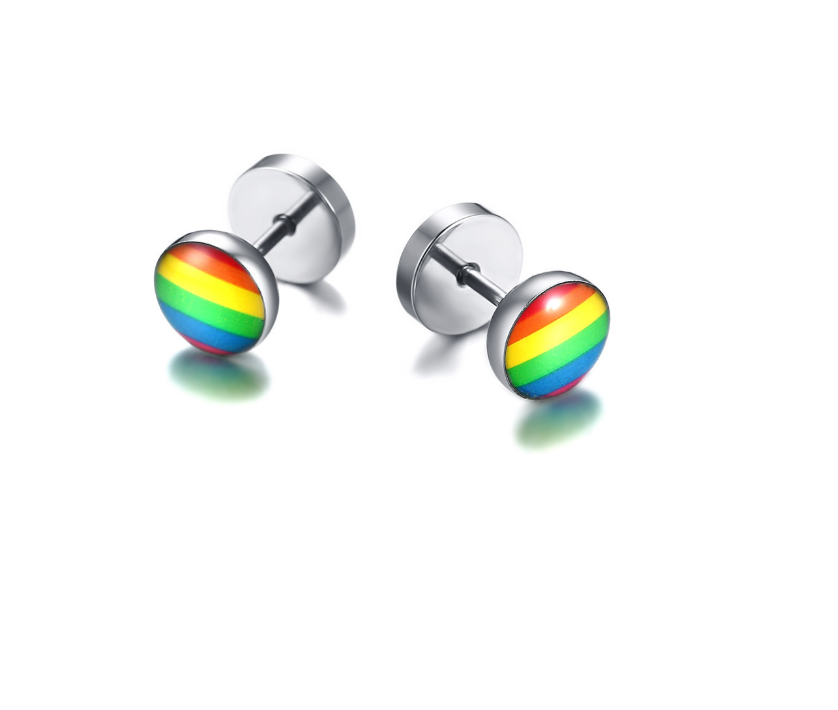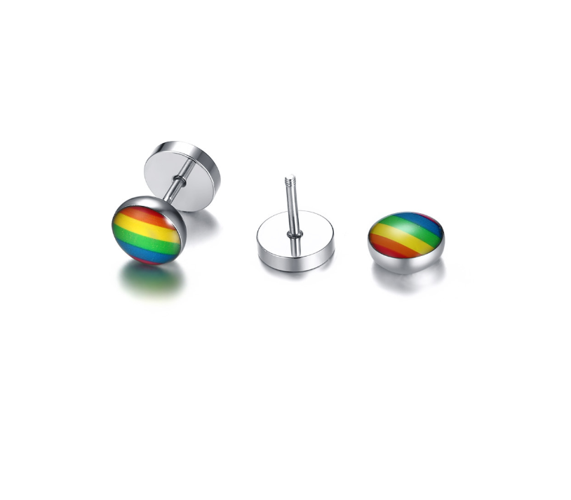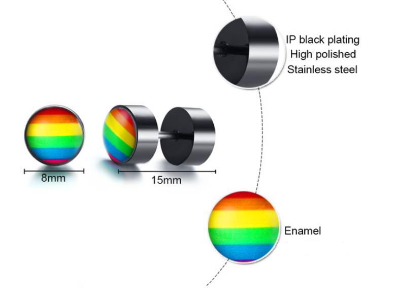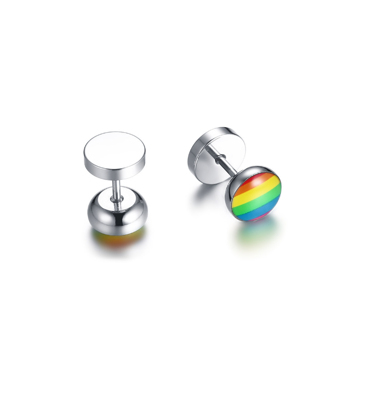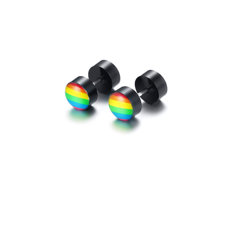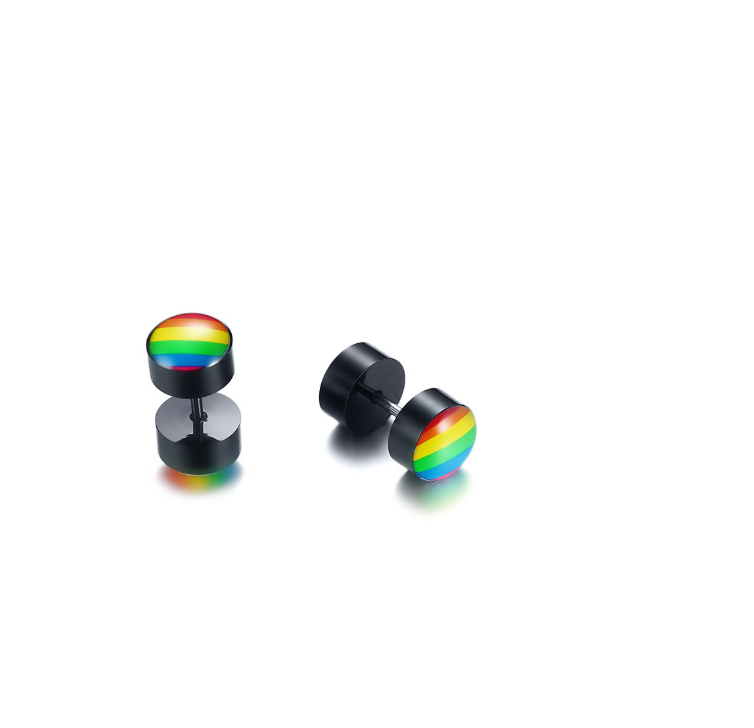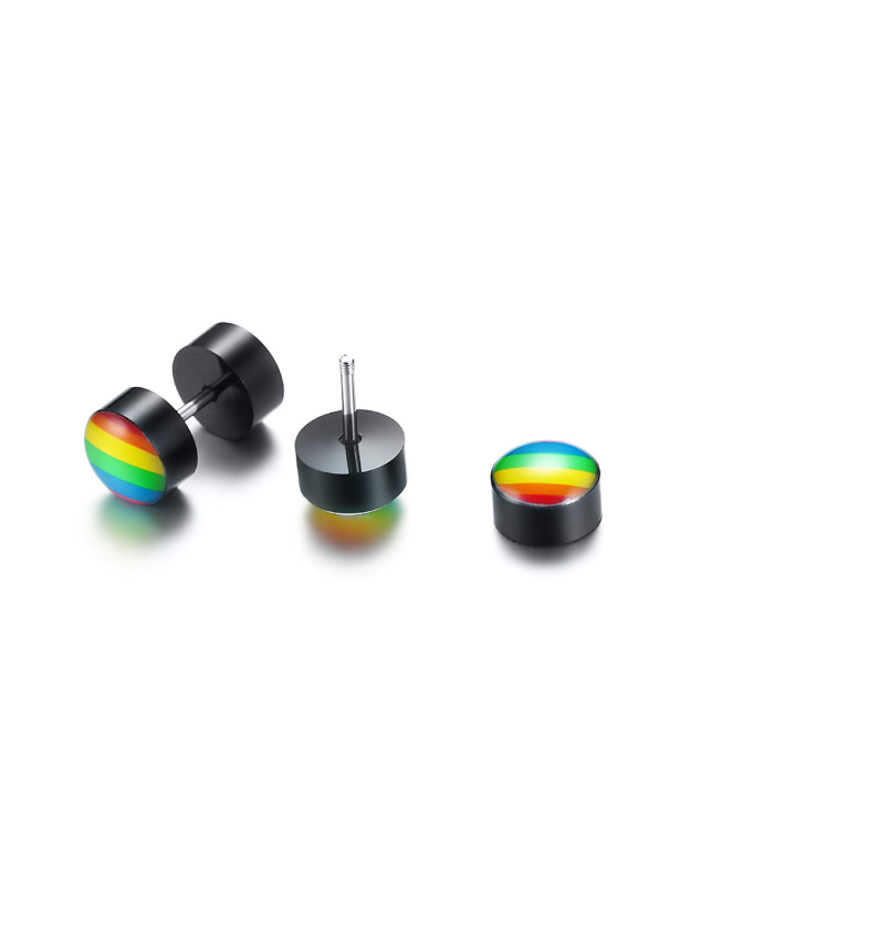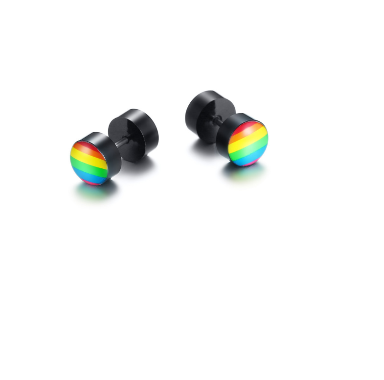 New Products Stainless Steel Round Dumbbell Rainbow Stud Earrings Black Steel