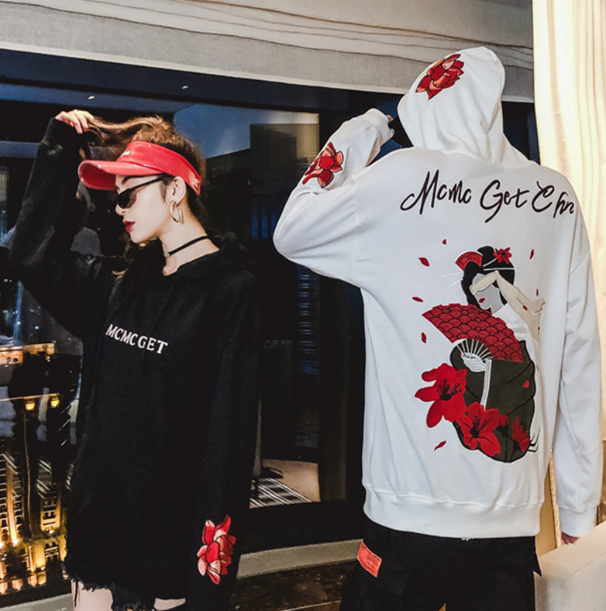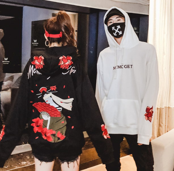 Embroidered autumn student hooded loose sweater tide BF lovers