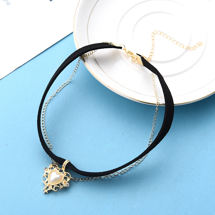 Golden Peach Heart Velvet Necklace