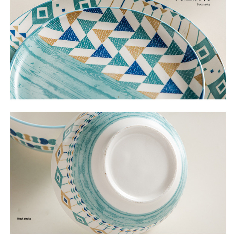 Product Information:Product category: bowl, plate, plate setMaterial: potteryShape: roundMicrowave oven: availableSurface technology: underglazeSpecifications: Geometric 6.25 inch bowl (54)Packing List:Ceramic tableware x1