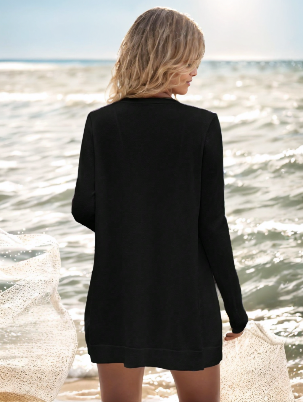Open Front Drop Shoulder Duster Cardigan,Long Sleeve Tops
