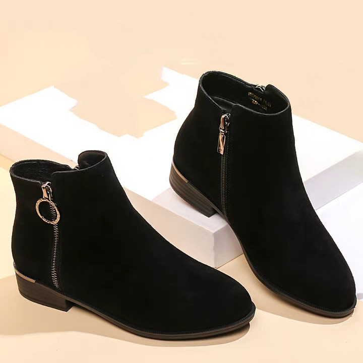 Product Information:Popular elements: sequins, rhinestonesToe shape: round toeUpper material: suedeHeel height: low heel (1-3CM)pattern: plainColour: BlackSize Information :35,36,37,38,39,40PackageWomen's cotton boots*1