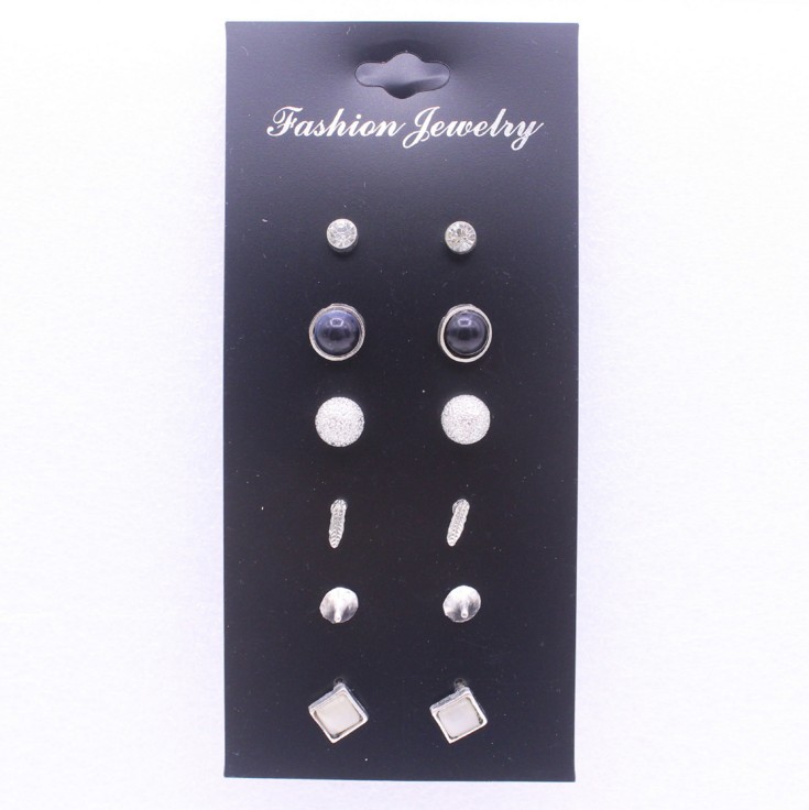 Foreign Trade Fashion Simple 6 Pairs Set Earrings Sizzling Explosion Models Diamond Leaf Gem Earrings