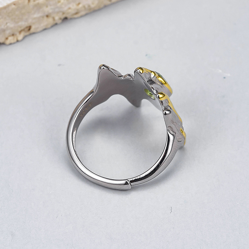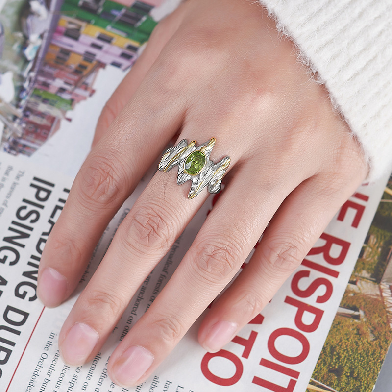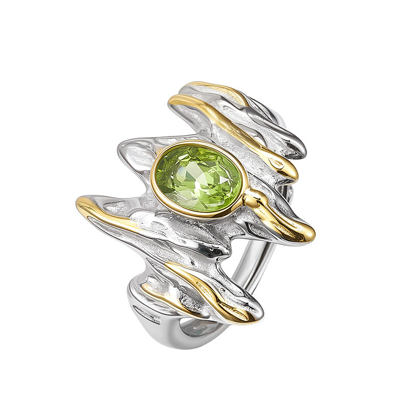 S925 Sterling Silver Irregular Personality Unisex Style Prehnite Open Ring