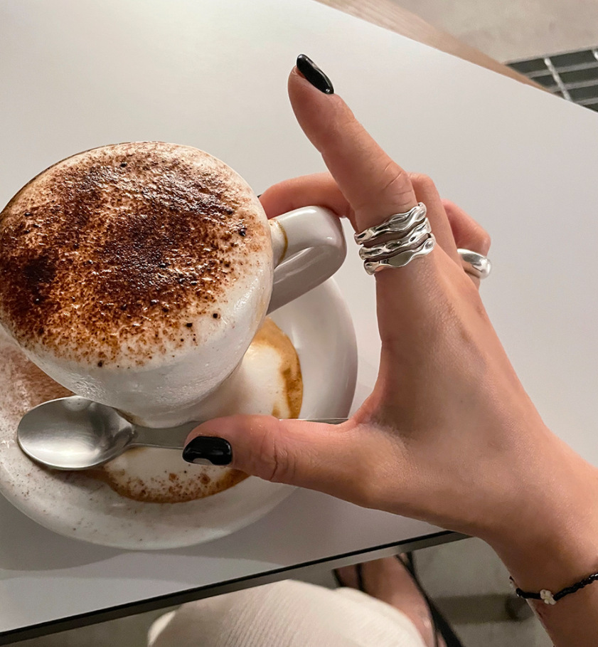 Sterling Silver Niche Design Sense Net Celebrity Retro Multi-layer Ring