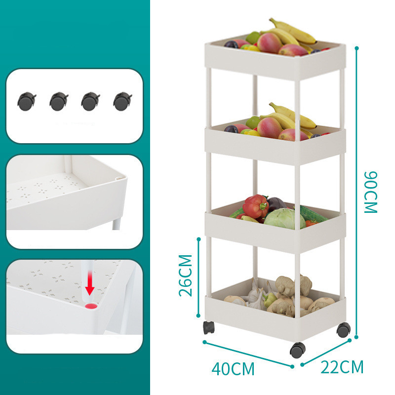 Product Size:Three layers: 40 X 22 X 64 (CM)Four layers: 40 X 22 x 90 (CM)Five layers: 40 X 22 X116 (CM)Packing list:Plastic storage rack X1