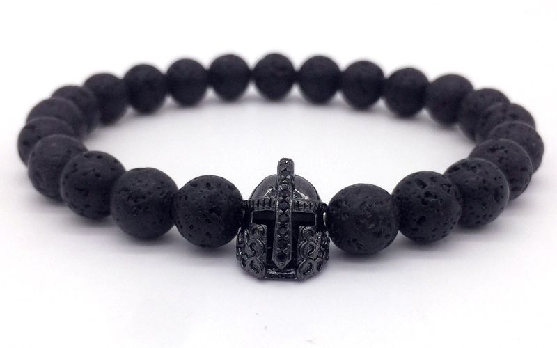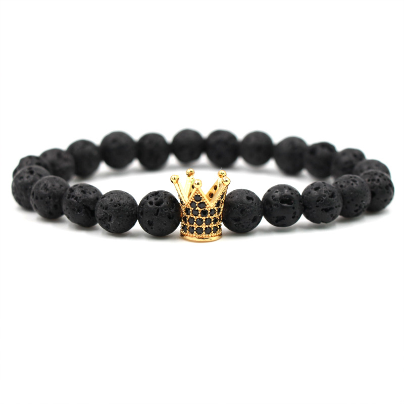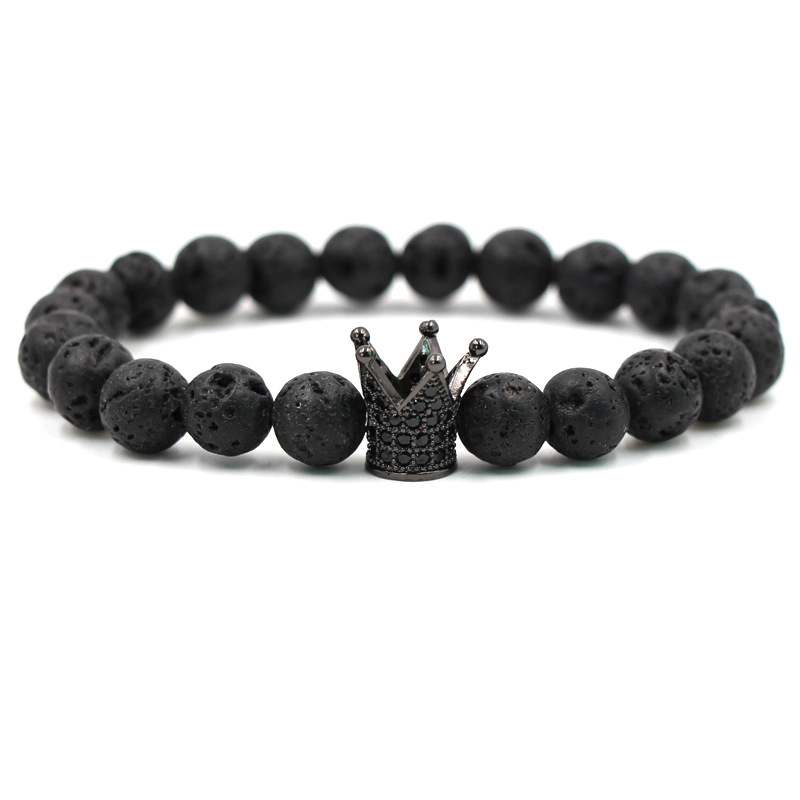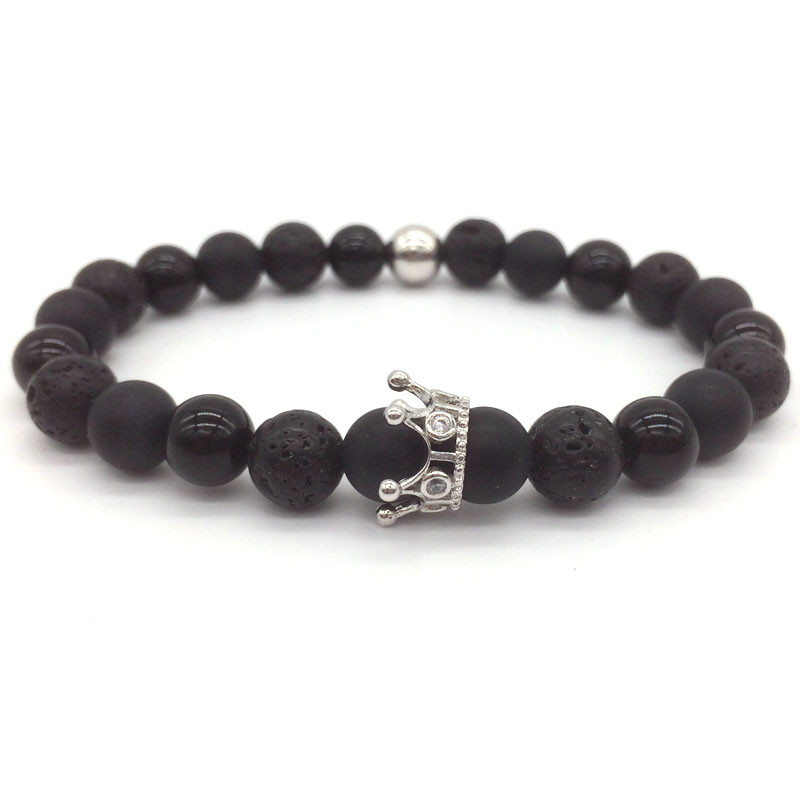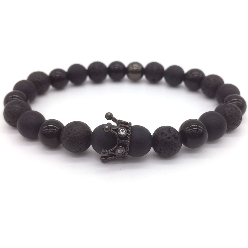 Hot Trendy Lava Stone Pave CZ Imperial Crown And Helmet Charm Bracelet For Men Or Women Bracelet Jewelry Pulseira hombres