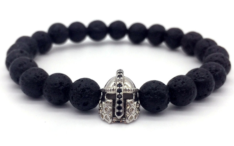 2018 Hot Trendy Lava Stone Pave CZ Imperial Crown And Helmet Charm Bracelet For Men Or Women Bracelet Jewelry Pulseira hombres