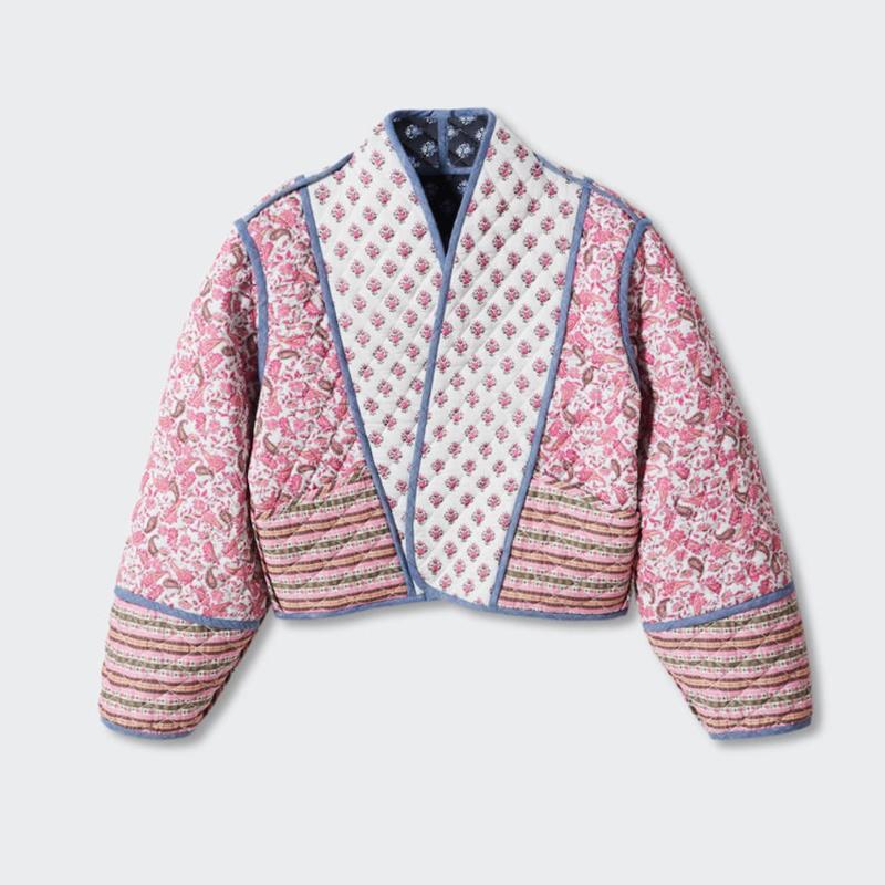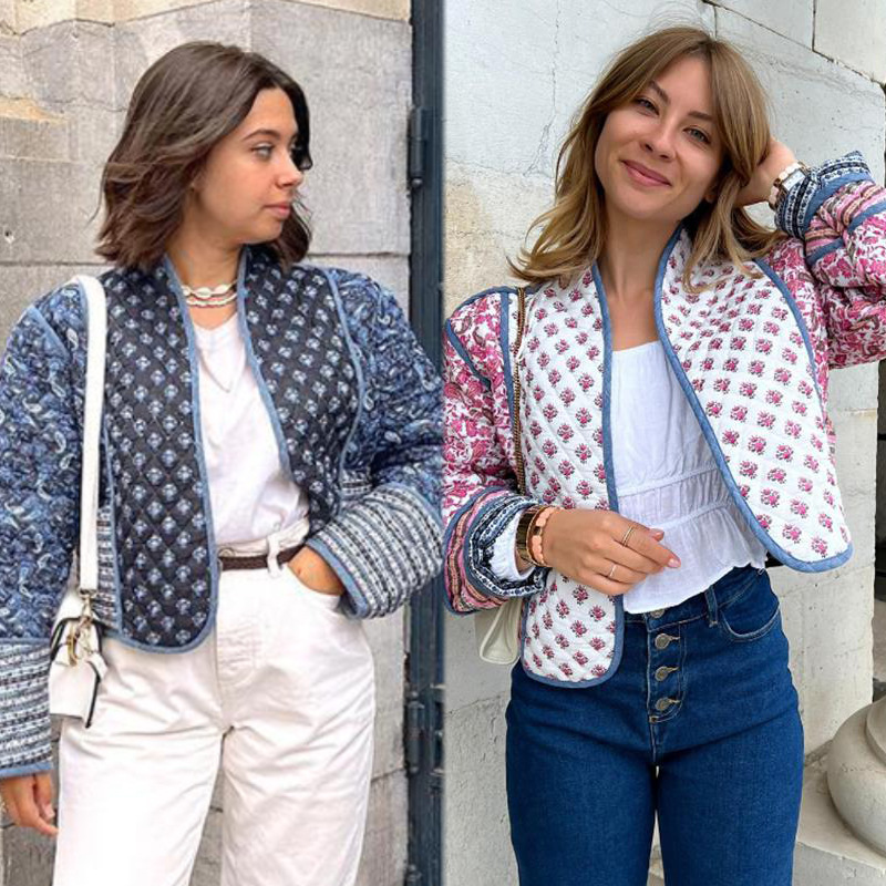 Color: pattern printed cotton-padded jacket two sides