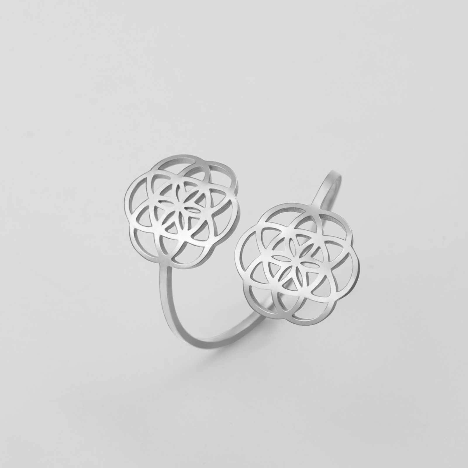 Style: Special Interest light luxury high-grade hollow flower open stainless steel Women's ring wholesale