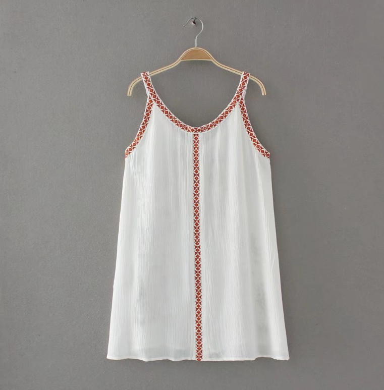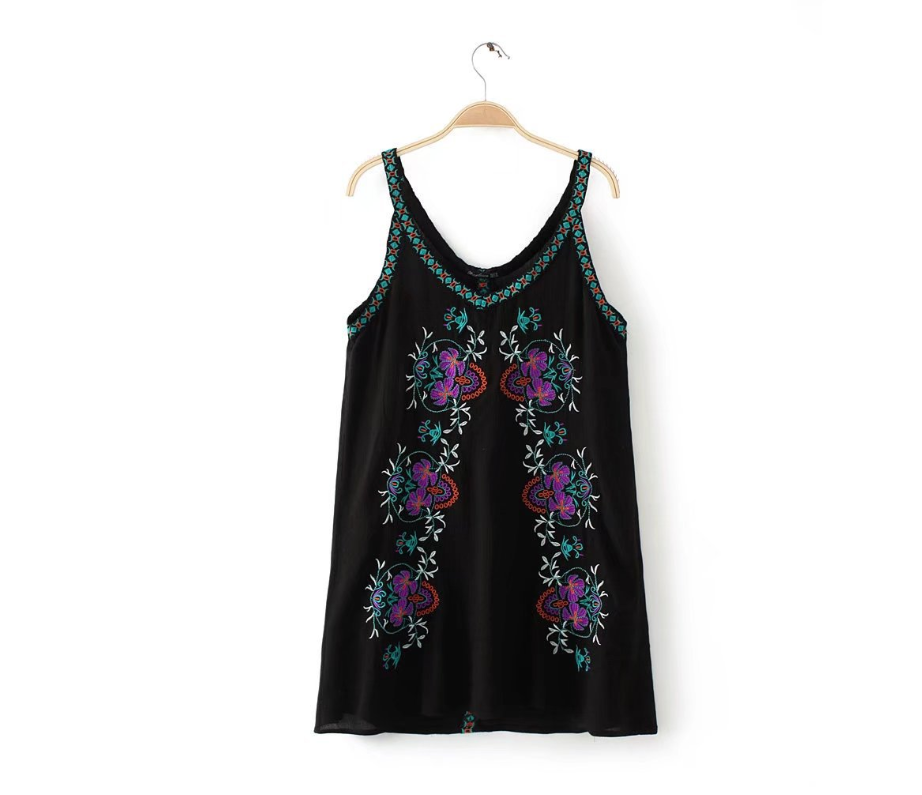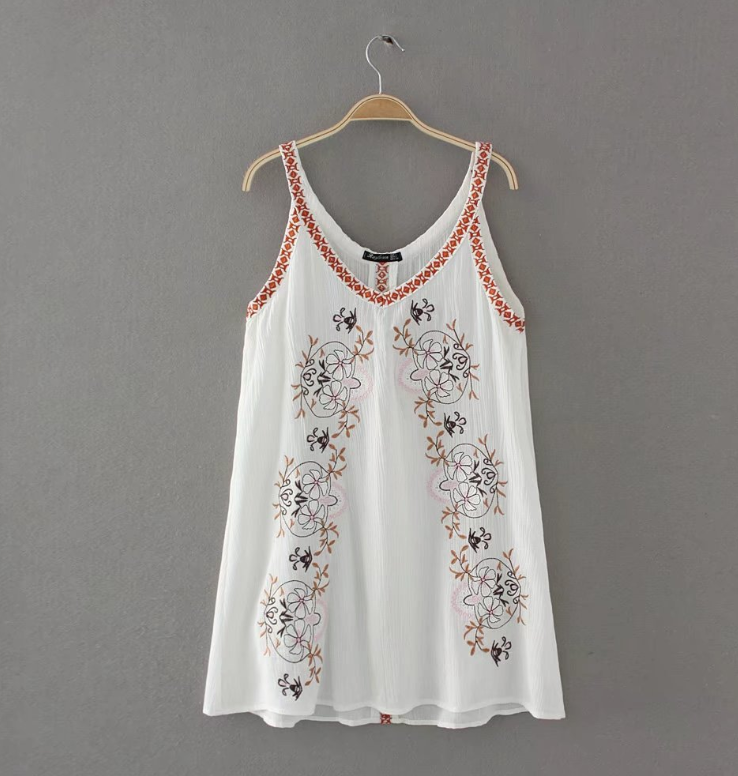 Women's fashion wild sleeveless slim embroidery V-neck dress female