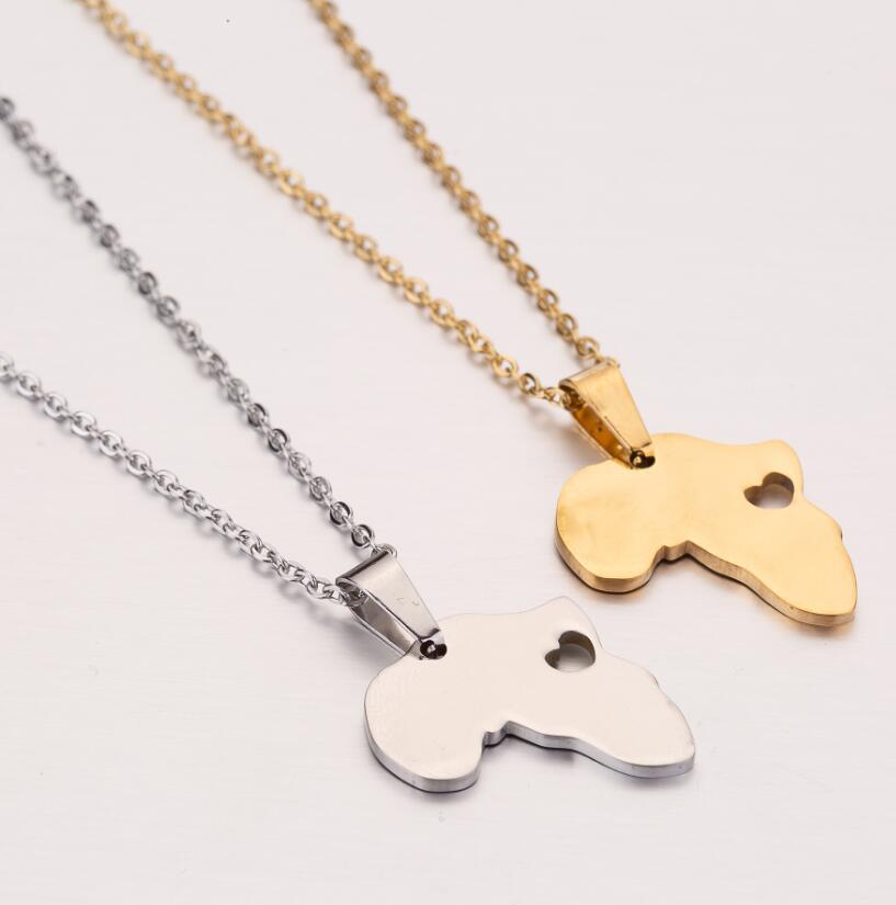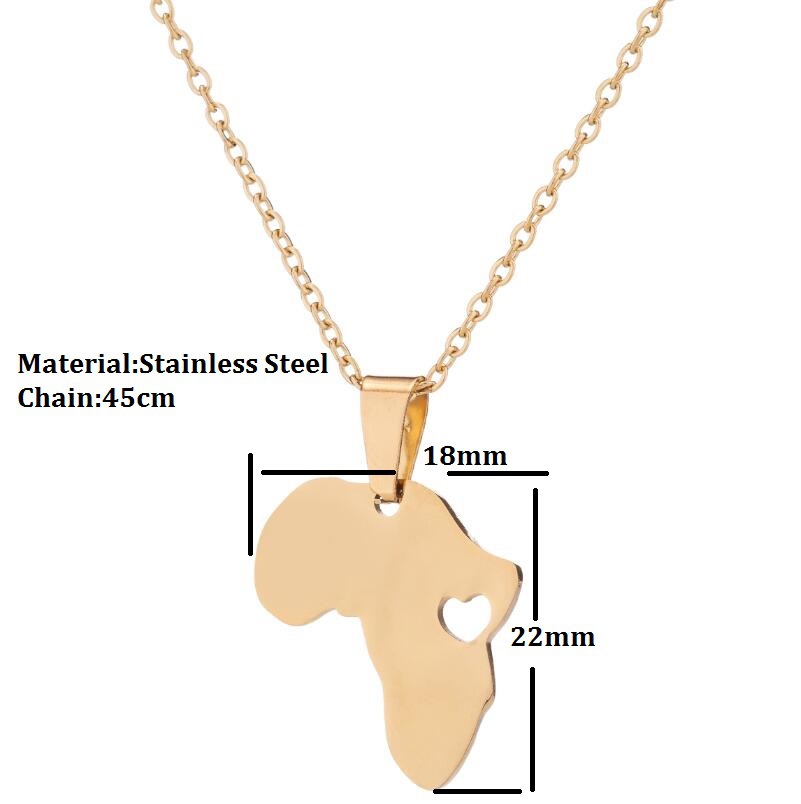 Style: Europe and AmericaMaterial: Stainless steel Processing technology: electroplatingModeling: stainless steel Africa map necklaceColor: gold, silver