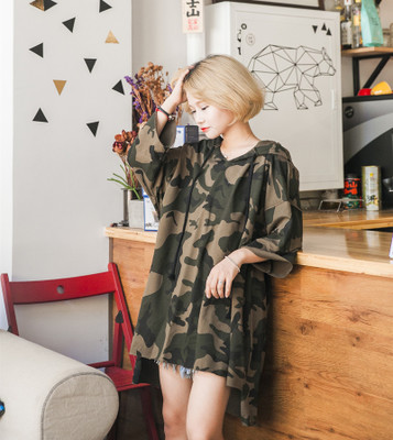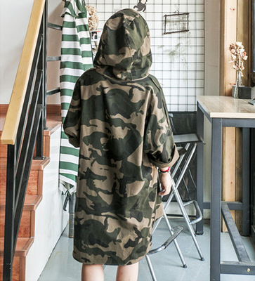 Autumn and summer new ultra-loose camouflage coat long-sleeved hooded sweater female middle long student Harajuku style