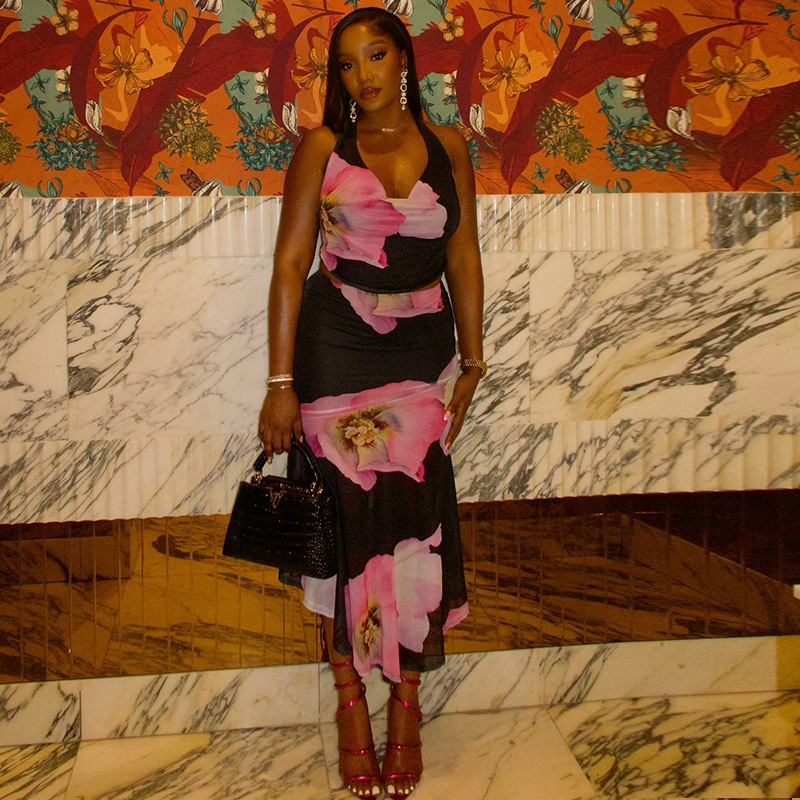 Product information: Color: Black and flower Size: S,M,L Skirt length: mid-length skirt Popular elements: Painted Main fabric composition: Polyester (polyester fiber) Applicable Gender: Female Sleeve length: sleeveless