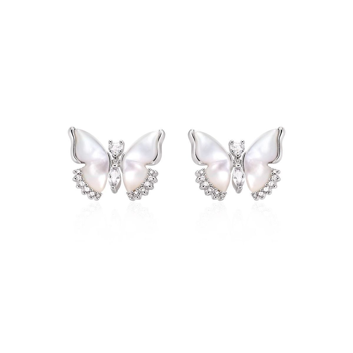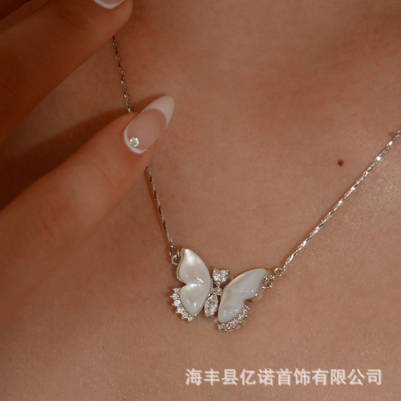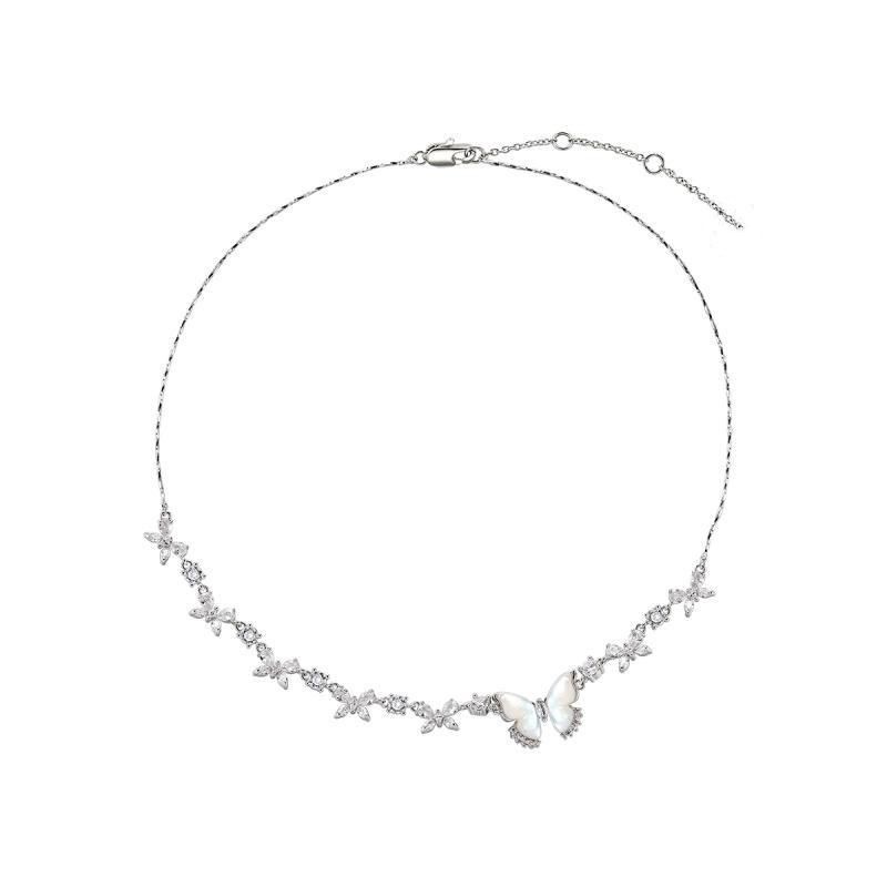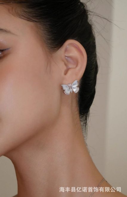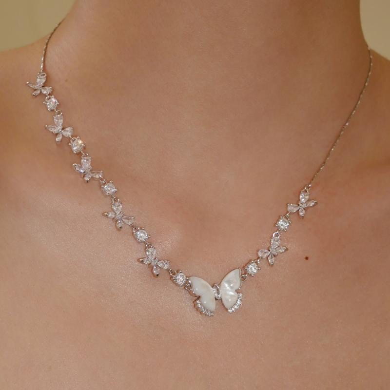 Color: silver half diamond butterfly stud, silver half diamond fine necklace, silver half diamond chunky necklace, ring