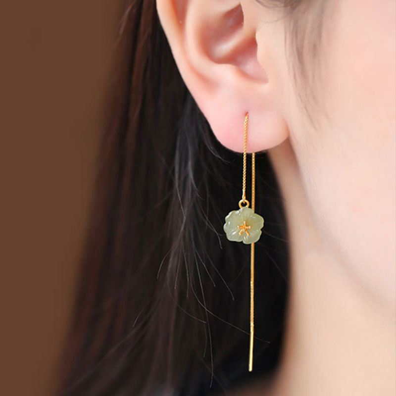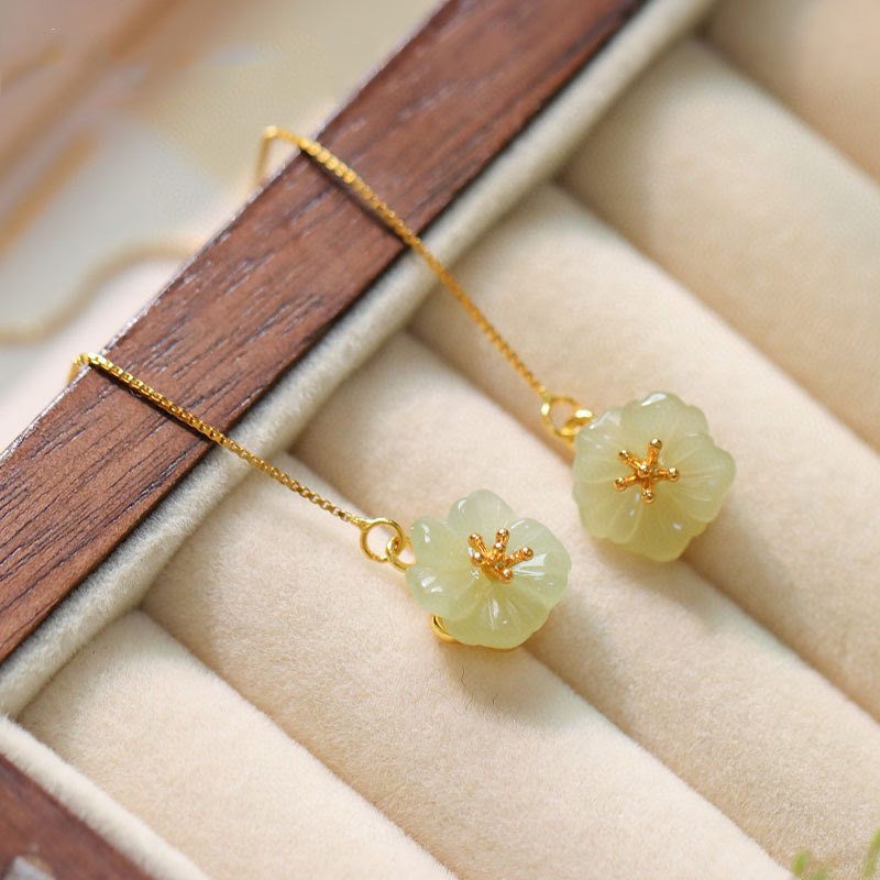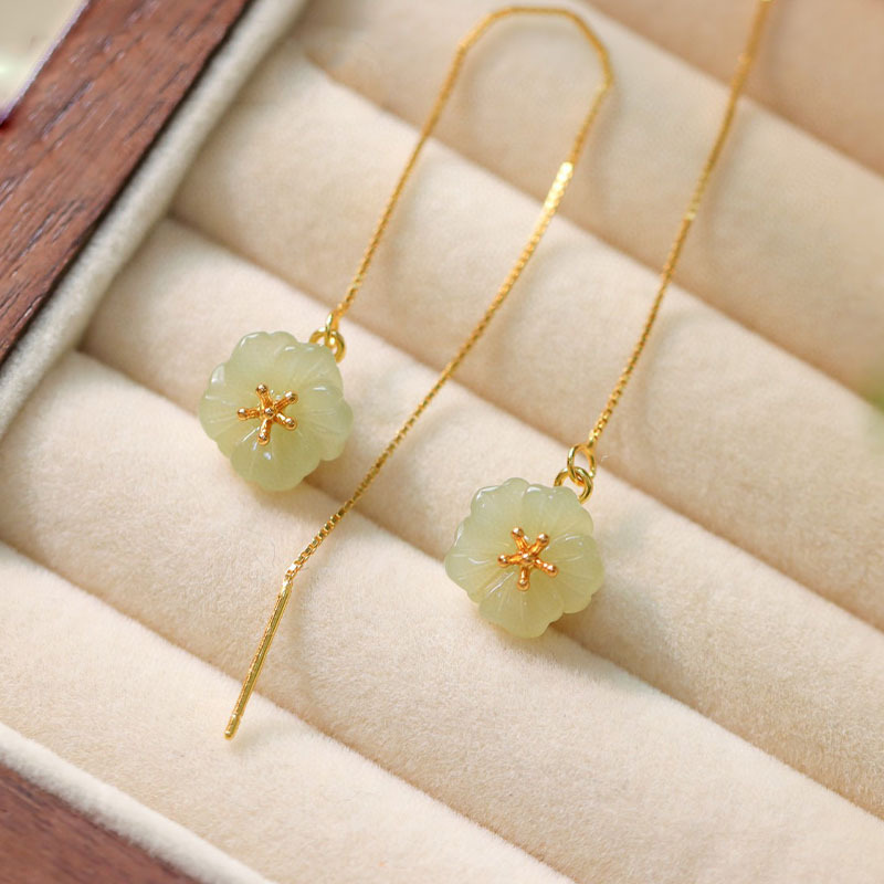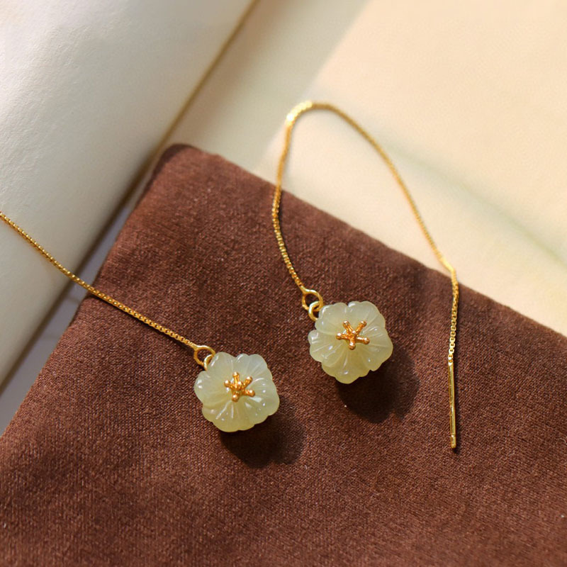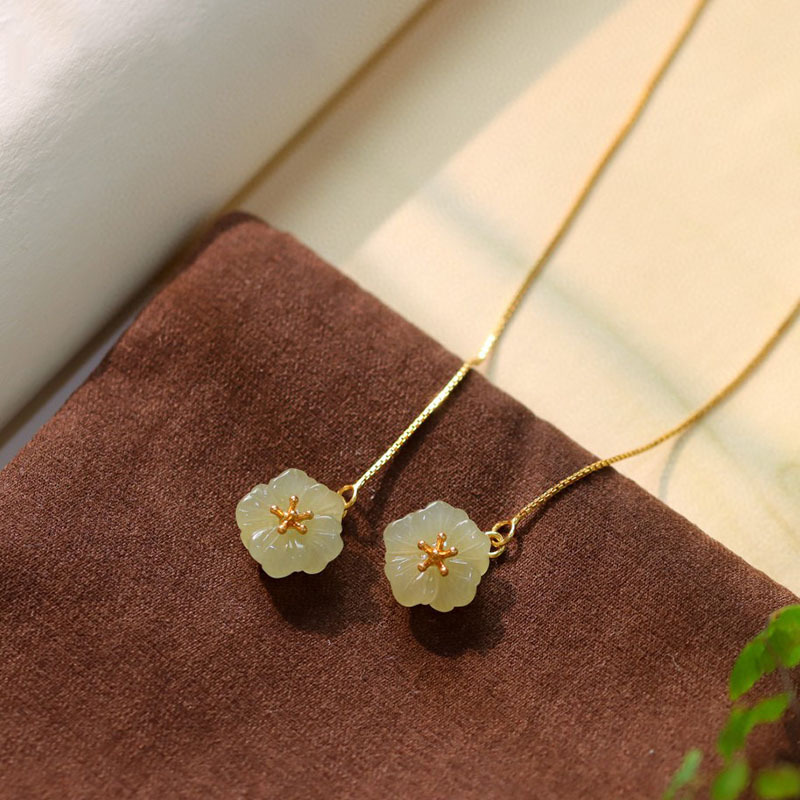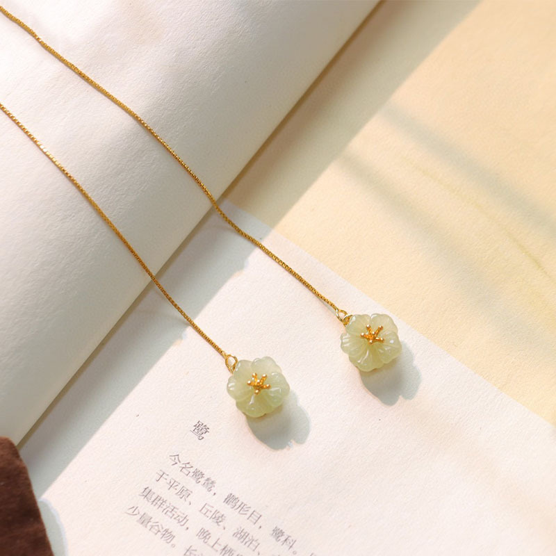 925 Gold And Silver Inlaid Natural Decorative Pattern Hetian Jade Earrings