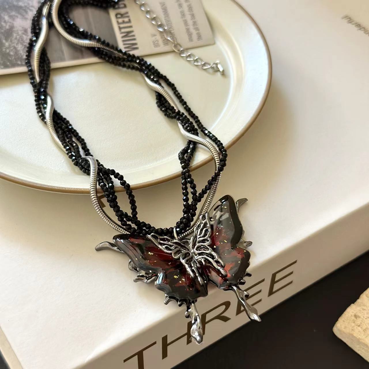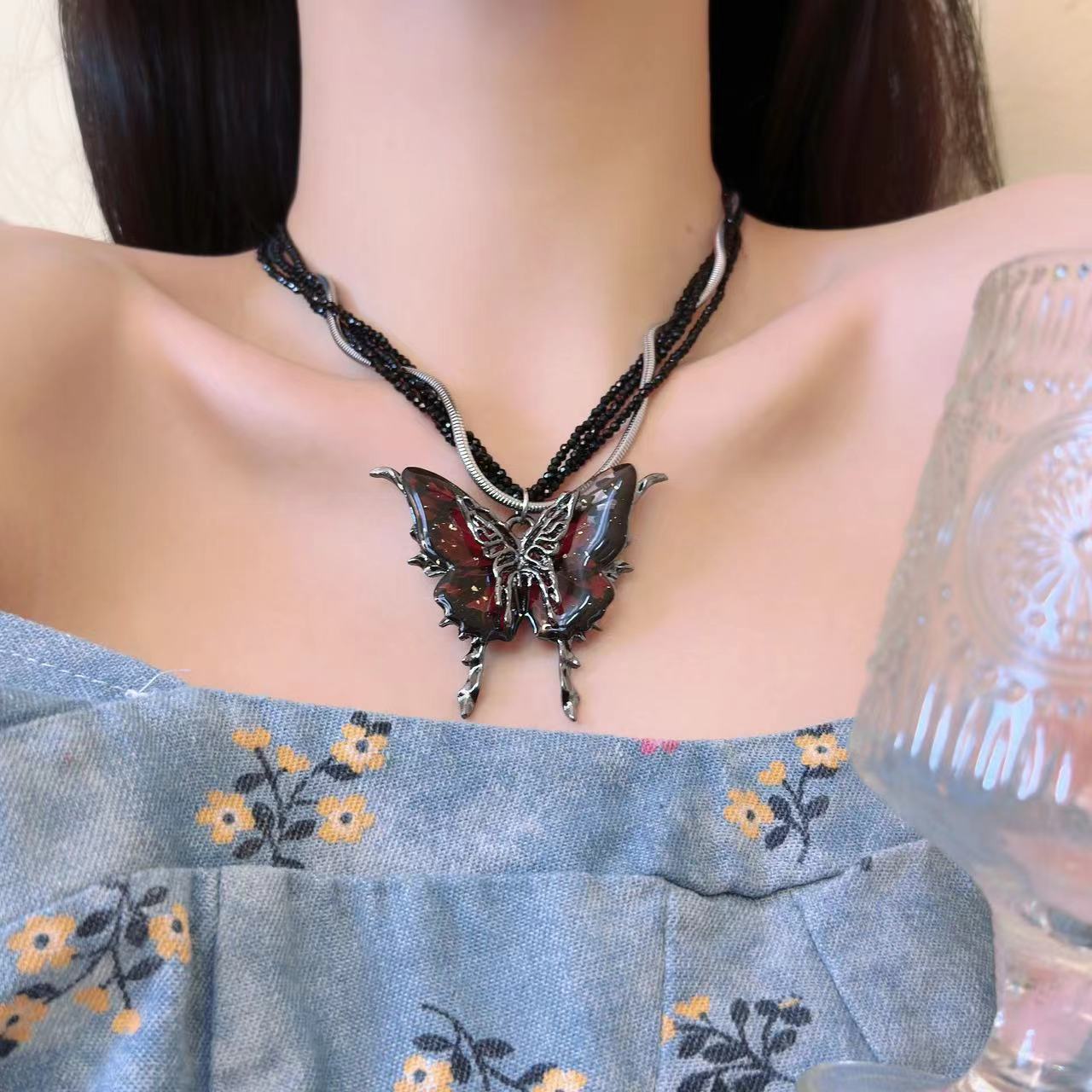 Product information:Treatment Process: Electroplating Color: as the main image Applicable population: Female Chain style: ball bead necklace Material: artificial crystal Modeling: animal/Zodiac Popular elements: Butterfly