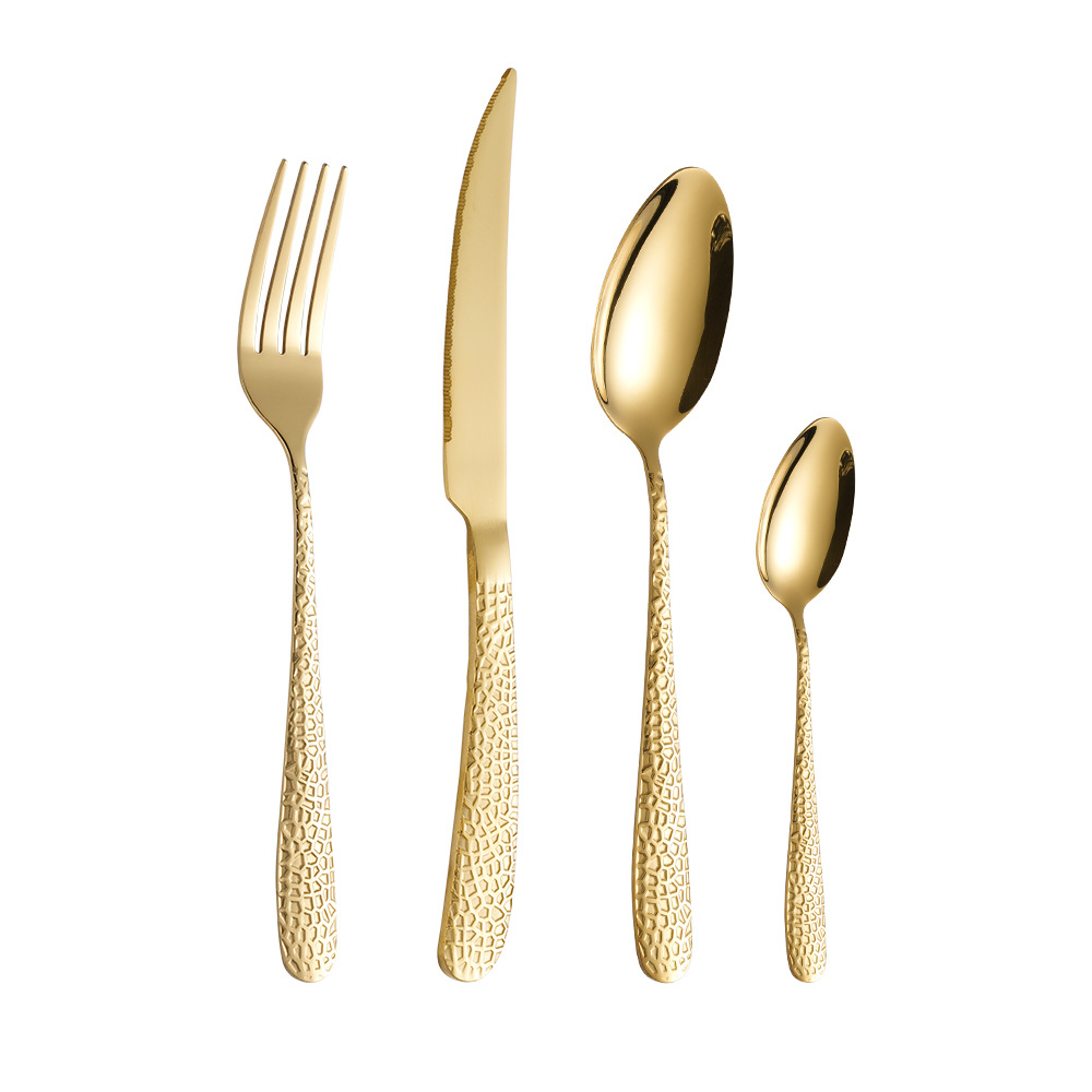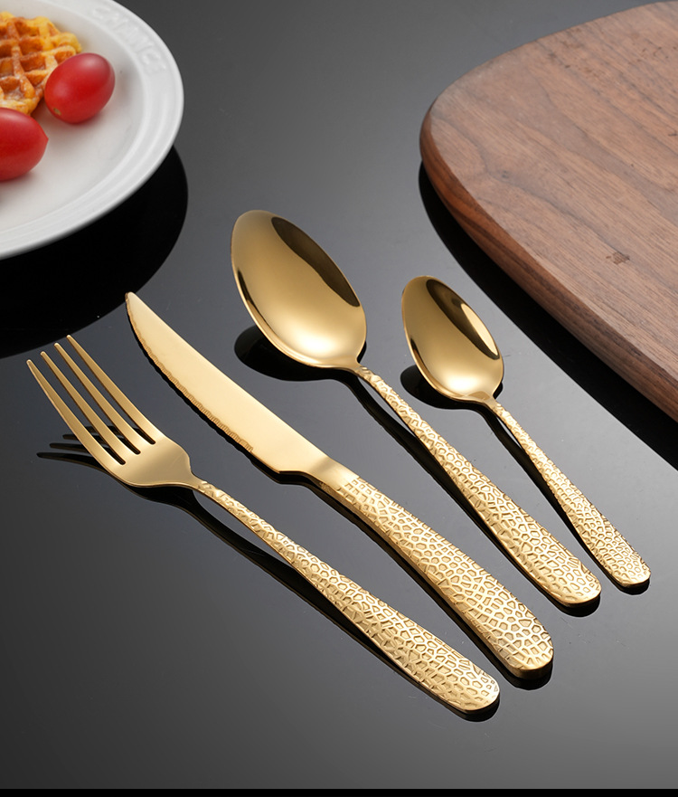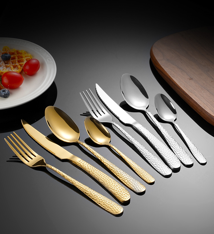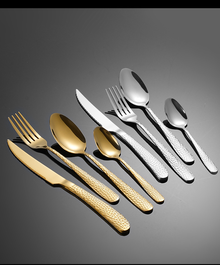 Color: hammer pattern Silver Spoon, hammer pattern silver fork, hammer pattern silver knife, hammer pattern silver tea spoon, hammer pattern gold spoon, hammer pattern Gold Fork, hammer pattern gold knife, hammer pattern gold Caddy spoon Caddy spoon