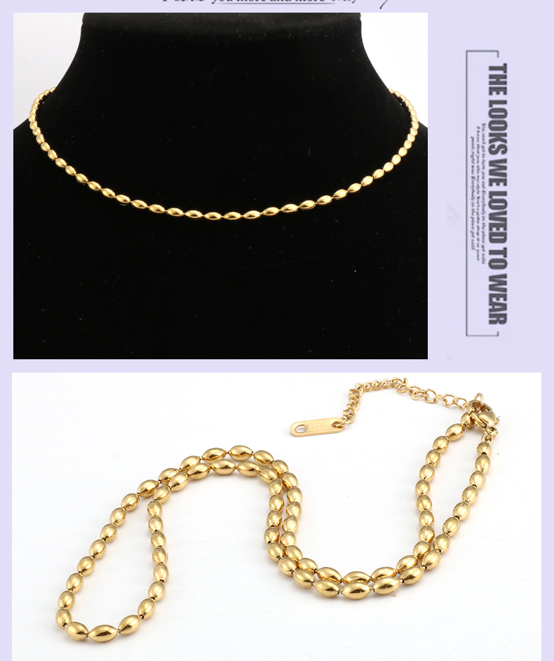 Product information:Treatment Process: Electroplating Color: Gold Chain style: ball bead necklace Material: titanium steel Style: Simple Perimeter: 21cm (inclusive)-50cm (inclusive)