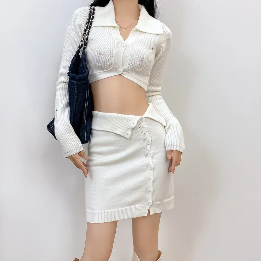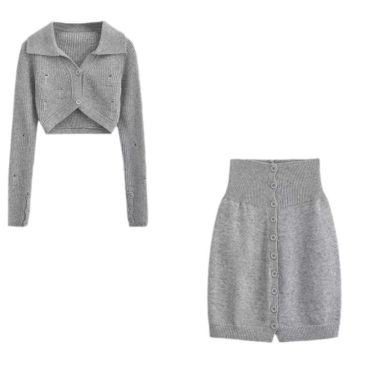 Color: black top, white top, gray top, black overskirt, white skirt, gray skirt