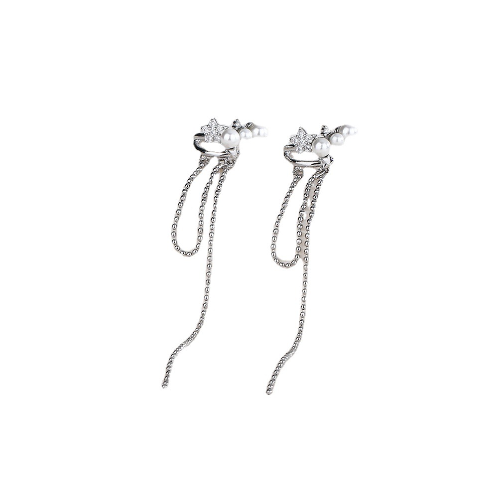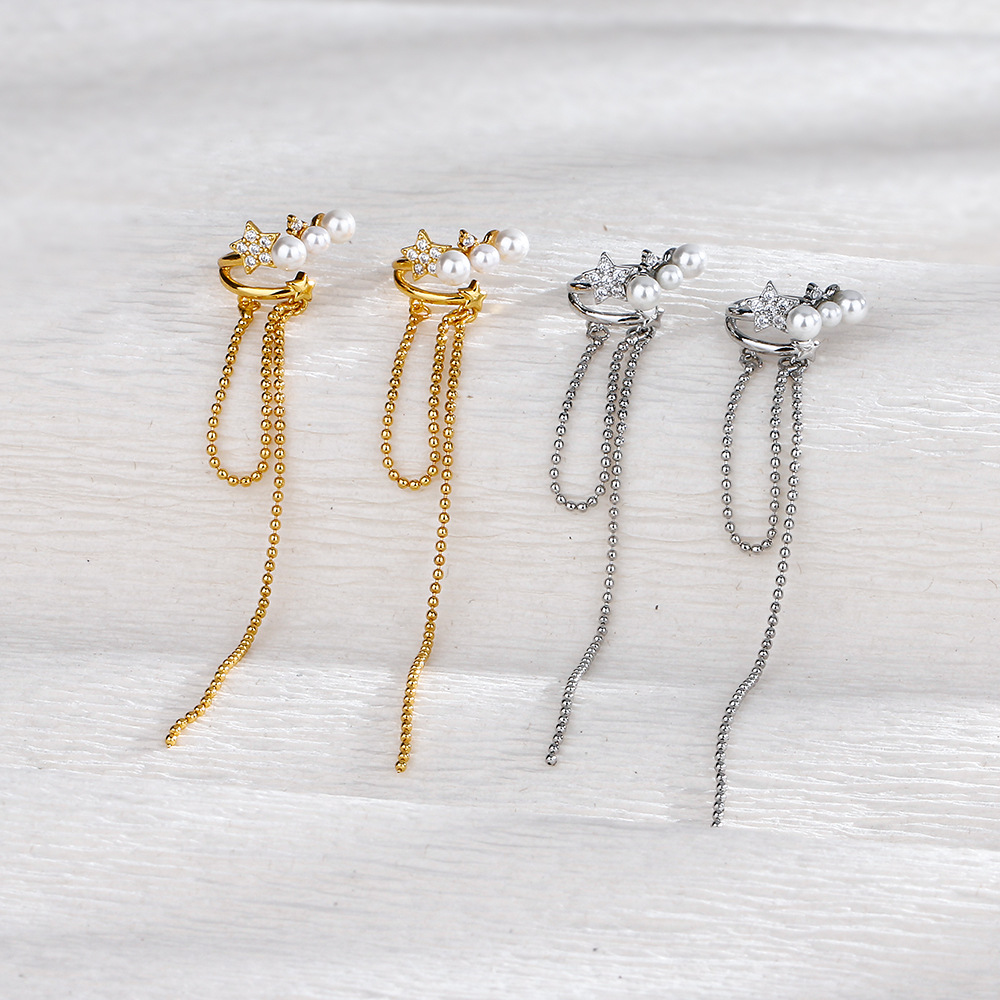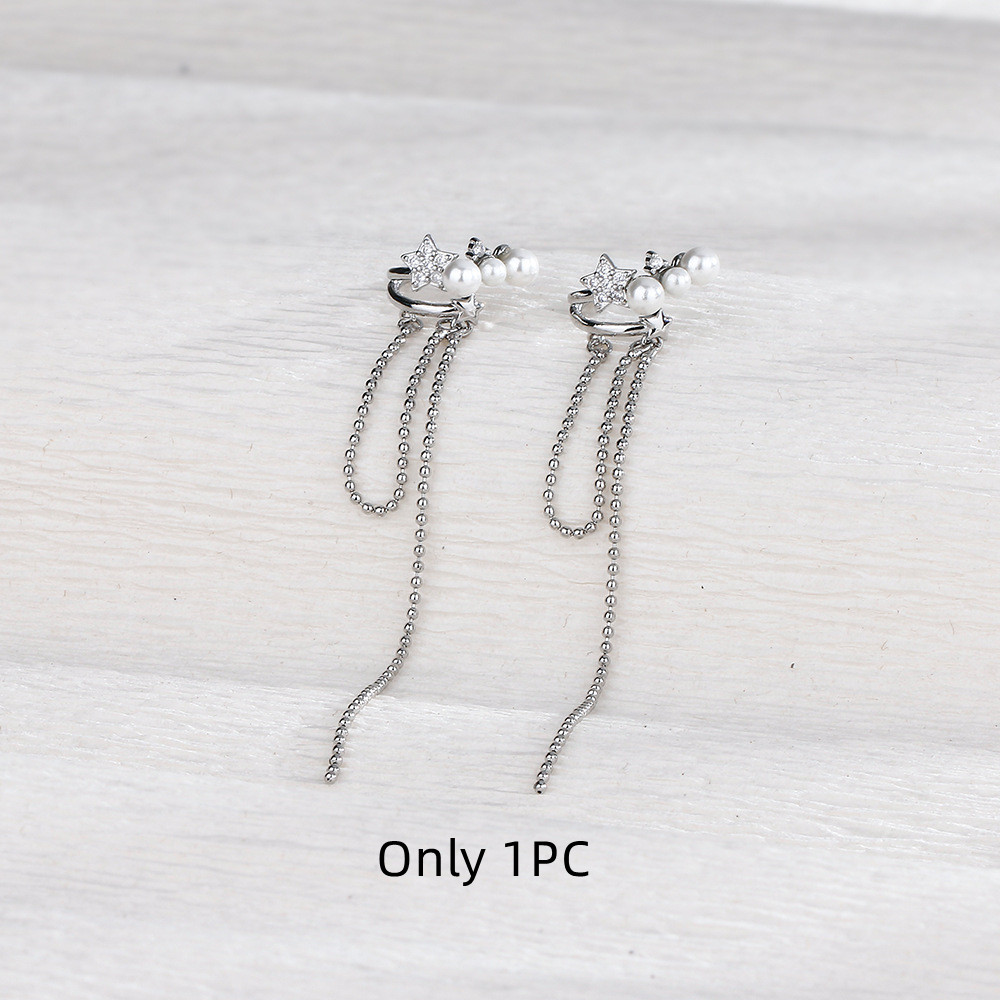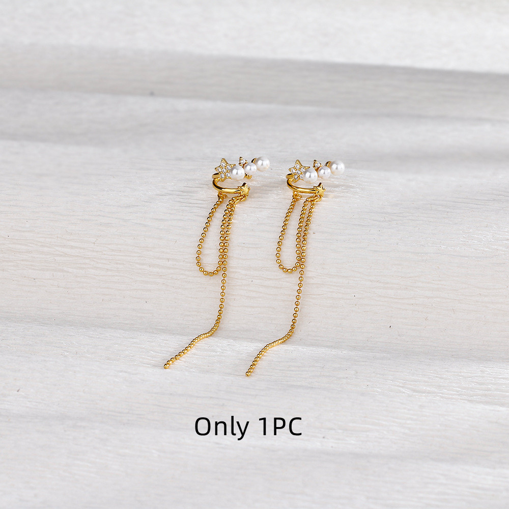 Color: one white gold right ear star pearl tassel ear clip, one gold right ear star pearl tassel ear clip