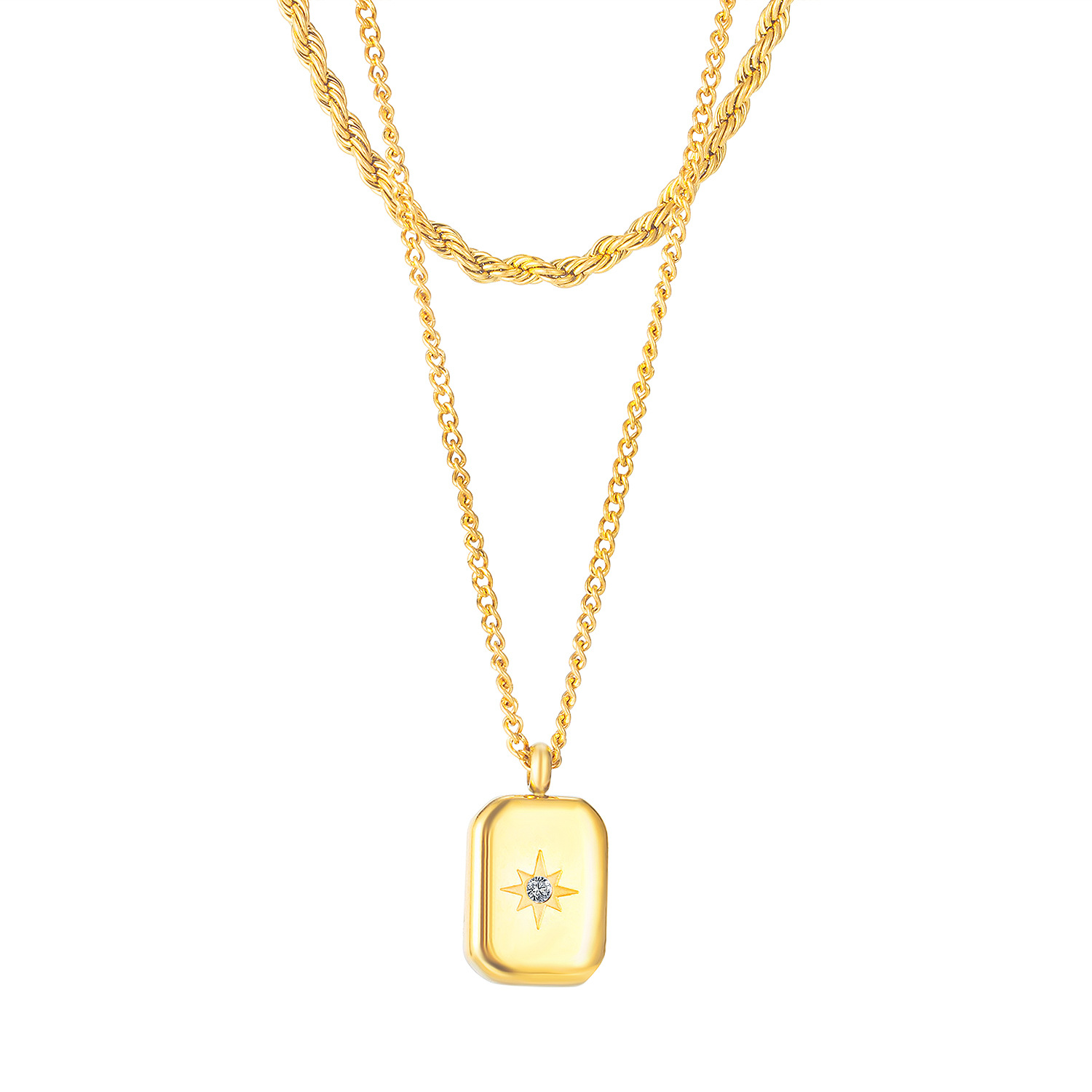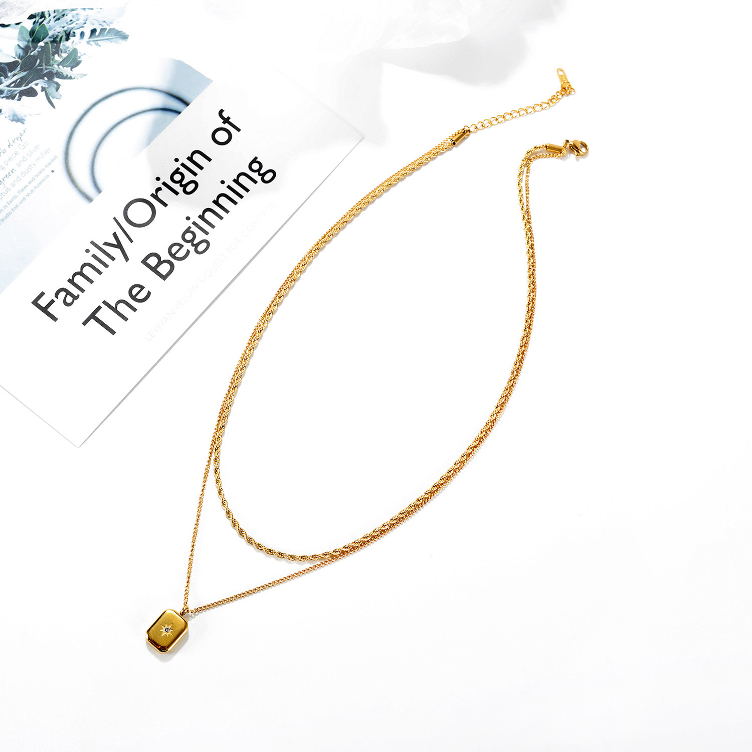 Product Information:Material: Stainless steelTreatment process: electroplatingPopular elements: geometryInlay material: not inlayColor: gold, rose gold Pendant material: titanium steel Packing:Necklace pendant * 1