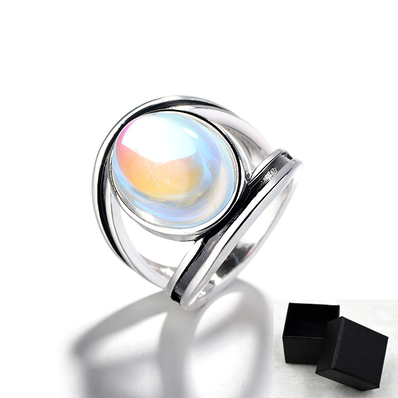 Material: CopperStyle: Europe and AmericaModeling: GeometryProcessing: PlatingStyle; women's styleMosaic material: sterling silver set with gemsColor: imitation moonstoneSize: No. 6, No. 7, No. 8, No. 9, No. 10