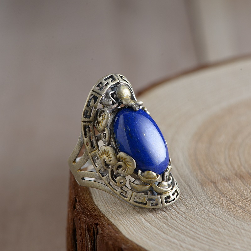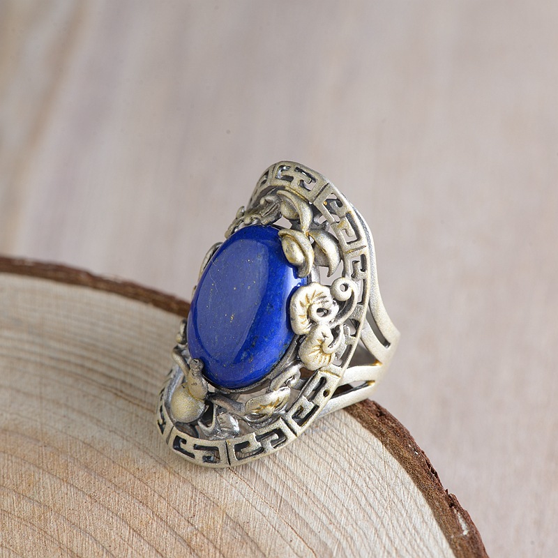 Name: S925 silver inlaid lapis lazuli ring