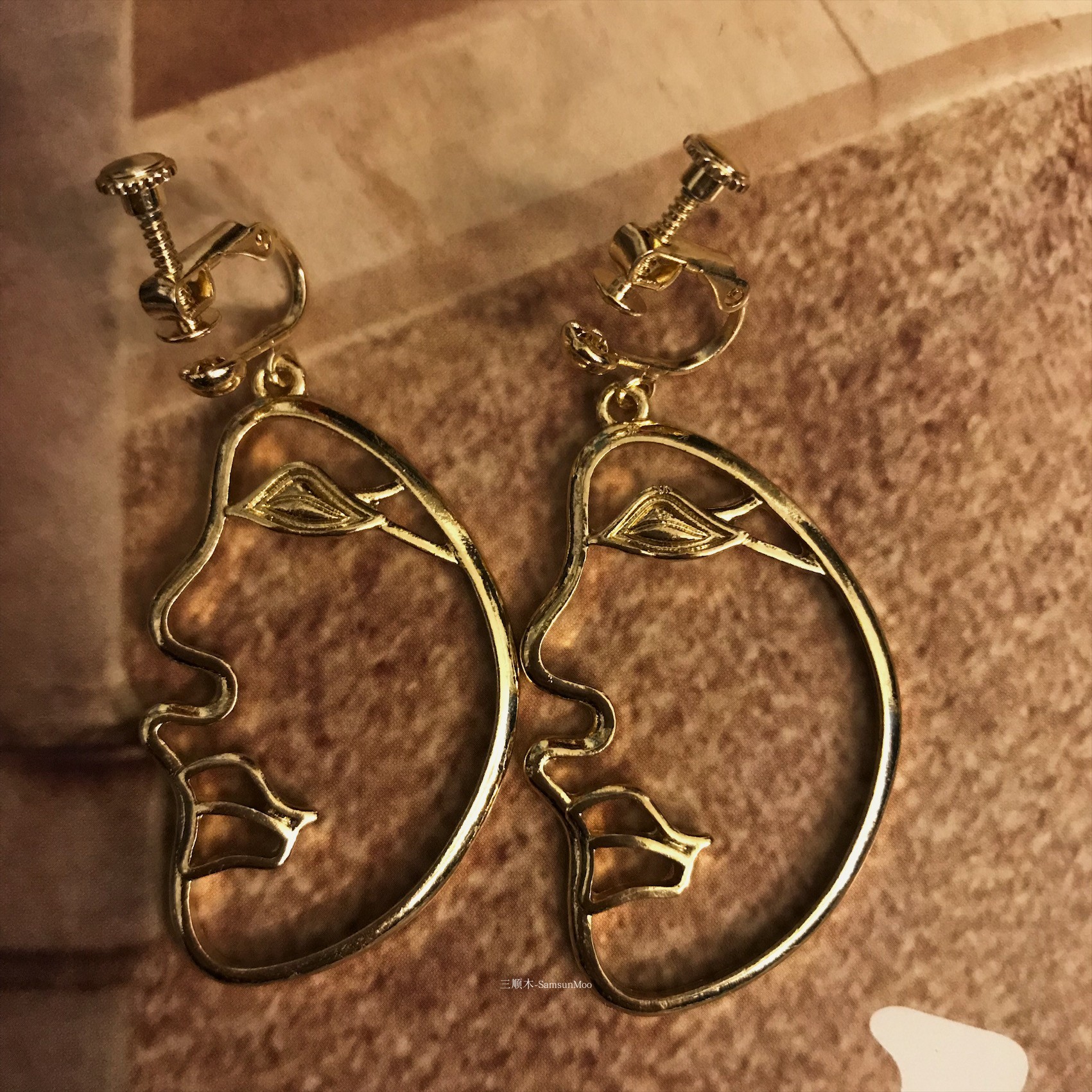 Foreign trade personalities funny Earrings hollowed out face palm palm earring stereo contour face studs