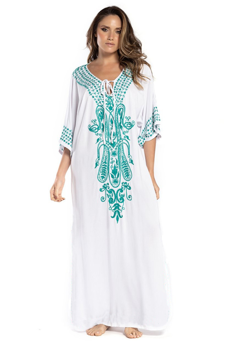 Color: white embroidery, navy blue embroidery, gray embroidery