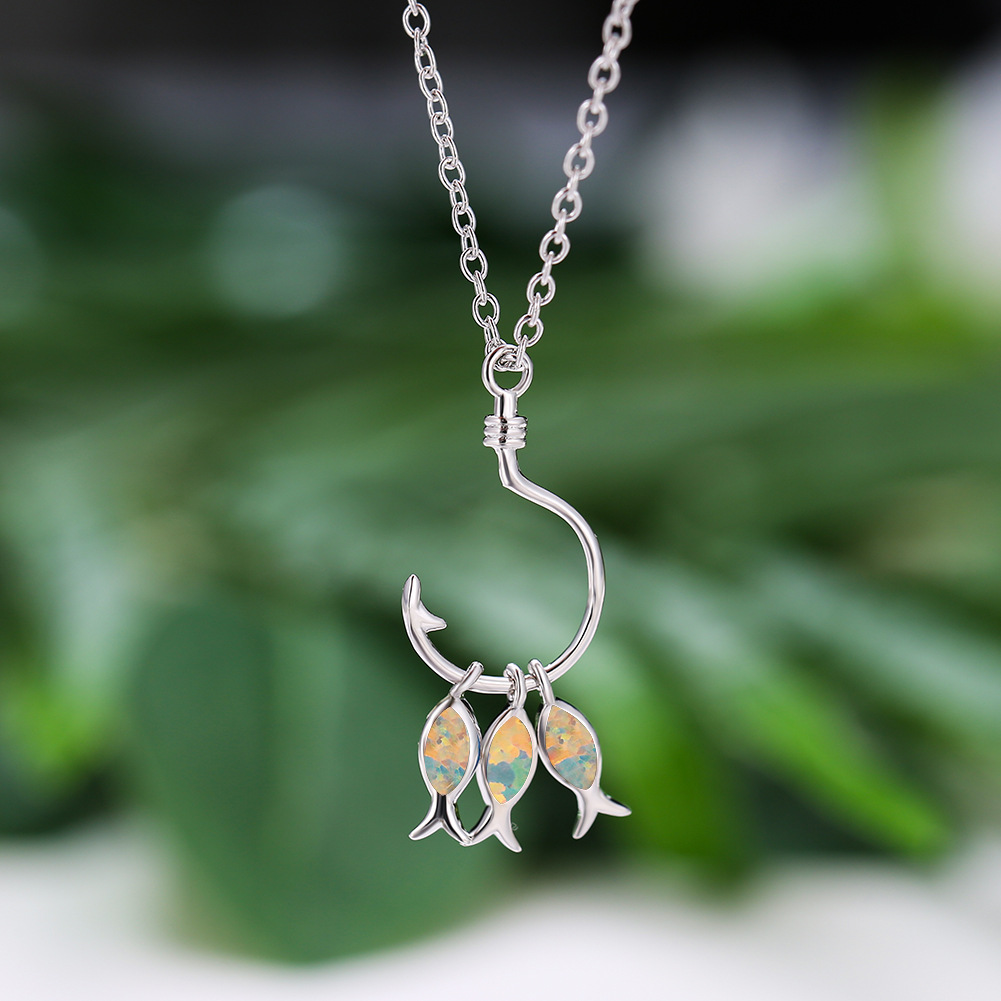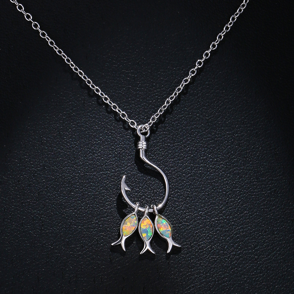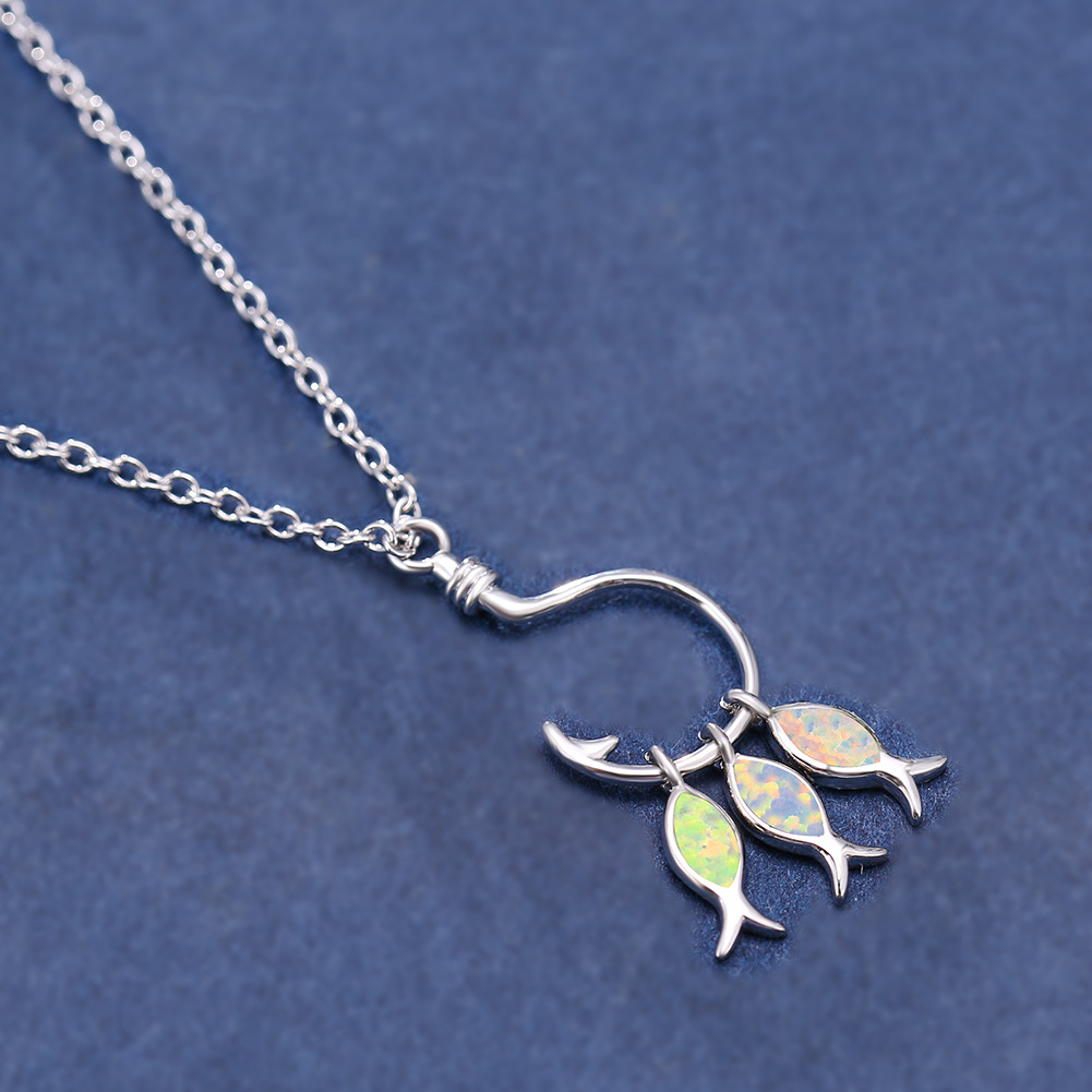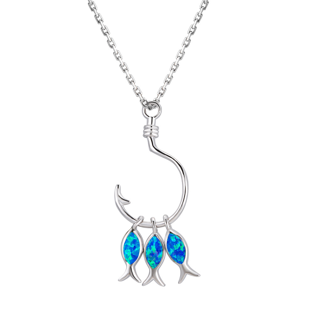 Product information:Color: blue, white Applicable people: Unisex Pendant: Opal Chain style: Box chain Material: Copper Modeling: animal/Zodiac Popular elements: tropical fish Style: Simple Meeting: 21cm (inclusive)-50cm (inclusive)