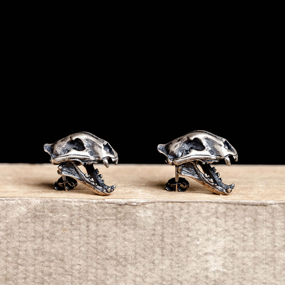 Exaggerated Saber-toothed Cat Tiger Head Ear Rings