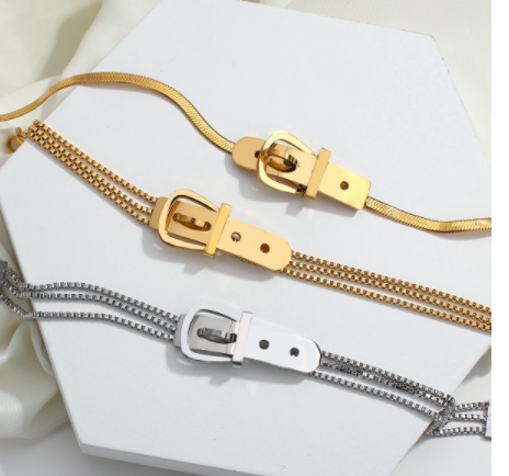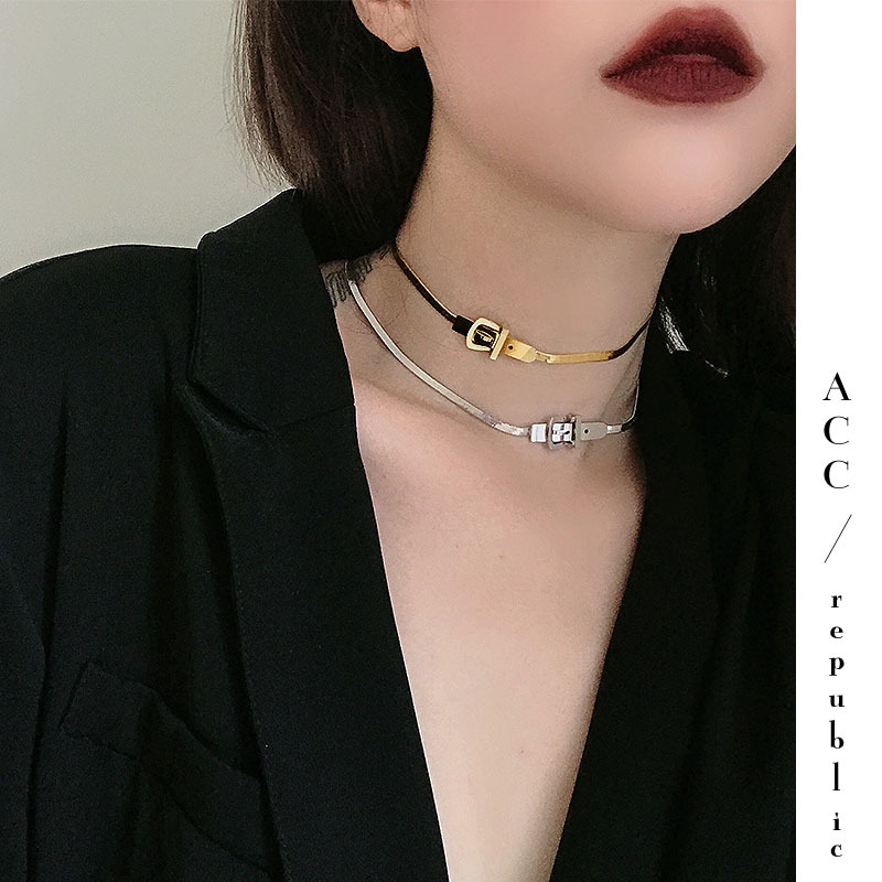 Belt Buckle Snake Bone Chain Necklace Necklace