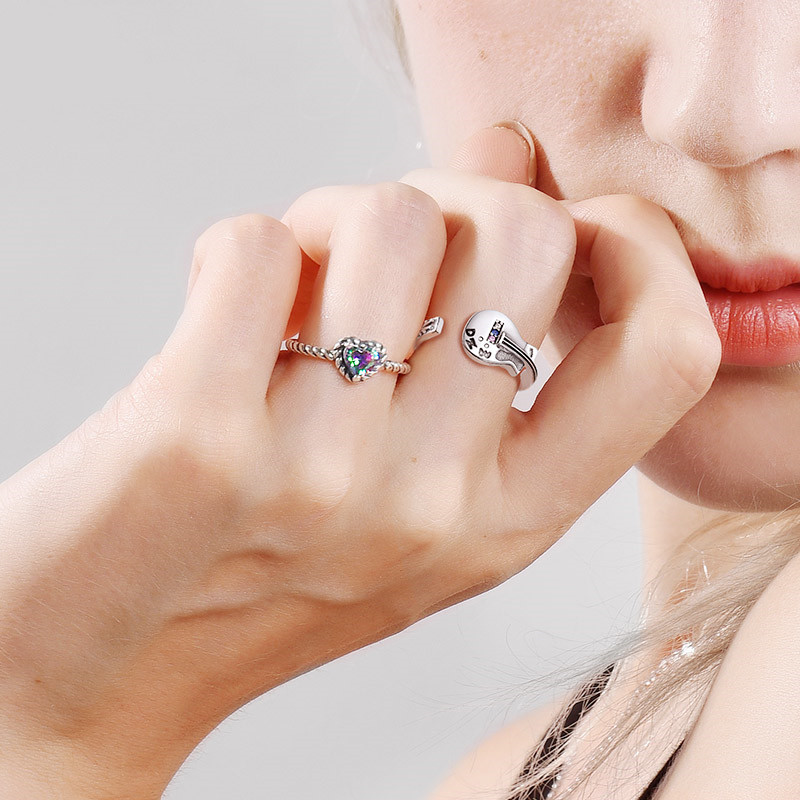 Product information :Material: silverMetal material: 925 silverColor classification: 925 silver guitar ring - adjustable opening and letteringInlay material: gold-plated inlaid artificial gemstones/semi-precious stonesPacking list:Ring*1